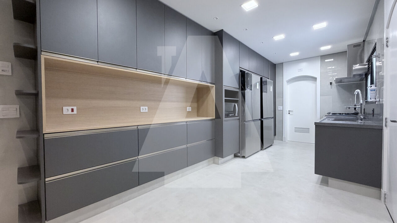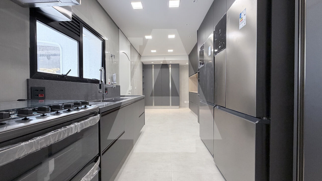 A cozinha, muito espaçosa e funcional, será entregue completa com geladeira, fogão, microondas e armários planejados novinhos, sem uso.