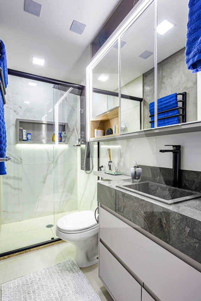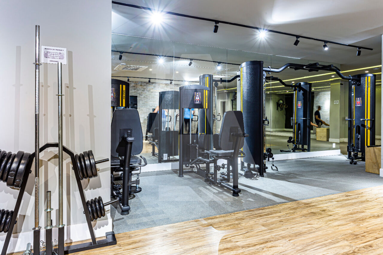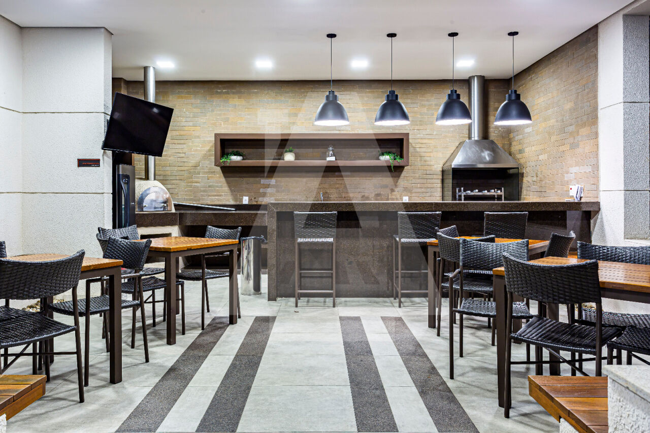 Outro grande diferencial é que no térreo do condomínio há diversas lojas, como dentista, barbearia, padaria, farmácia e salgaderia, permitindo resolver várias necessidades do dia a dia sem precisar sair do local.