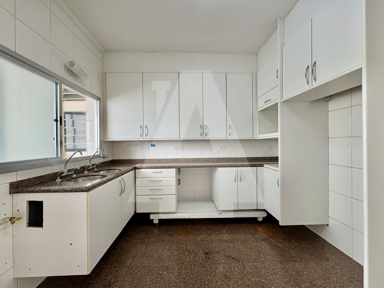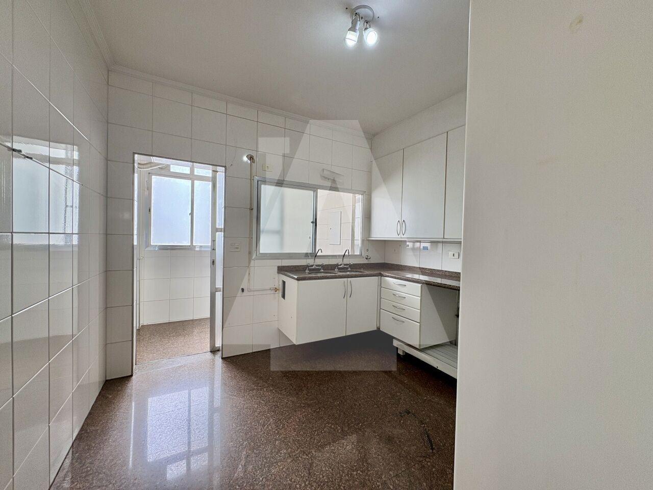 Na ala de apoio, a cozinha é funcional, a área de serviço é espaçosa e bem iluminada, e há ainda dependência completa.