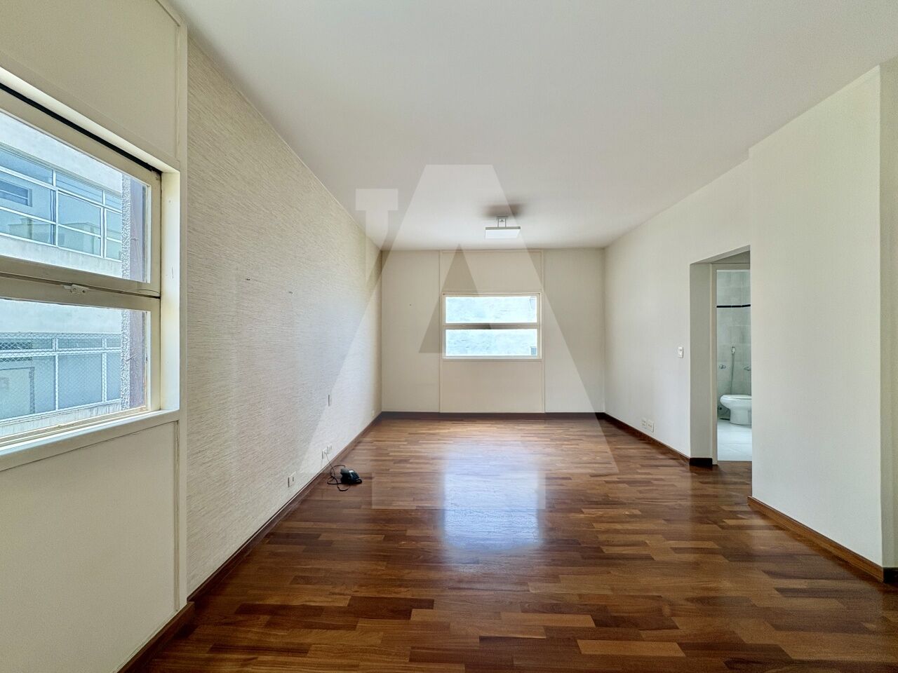 O living é amplo e conta com varanda e uma vista encantadora para a avenida mais charmosa do bairro. Na ala íntima, a planta atual oferece dois dormitórios - com fácil reversão para três - sendo uma suíte, além de um banheiro social.