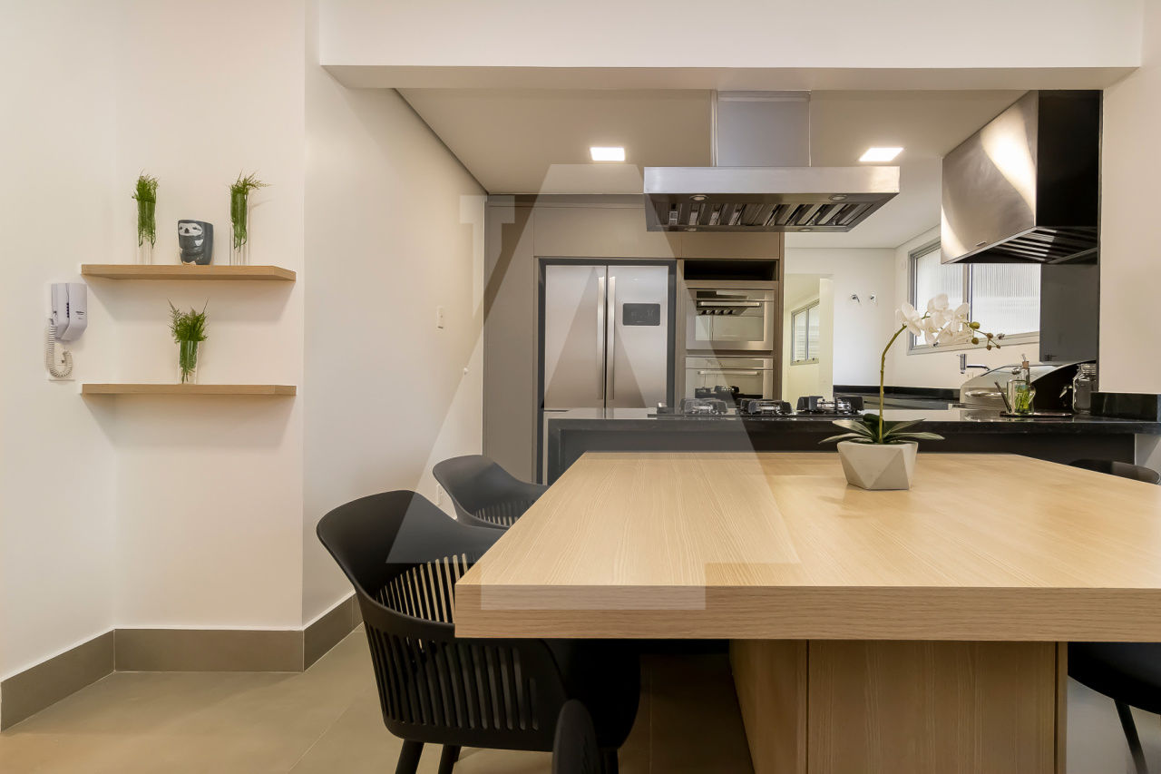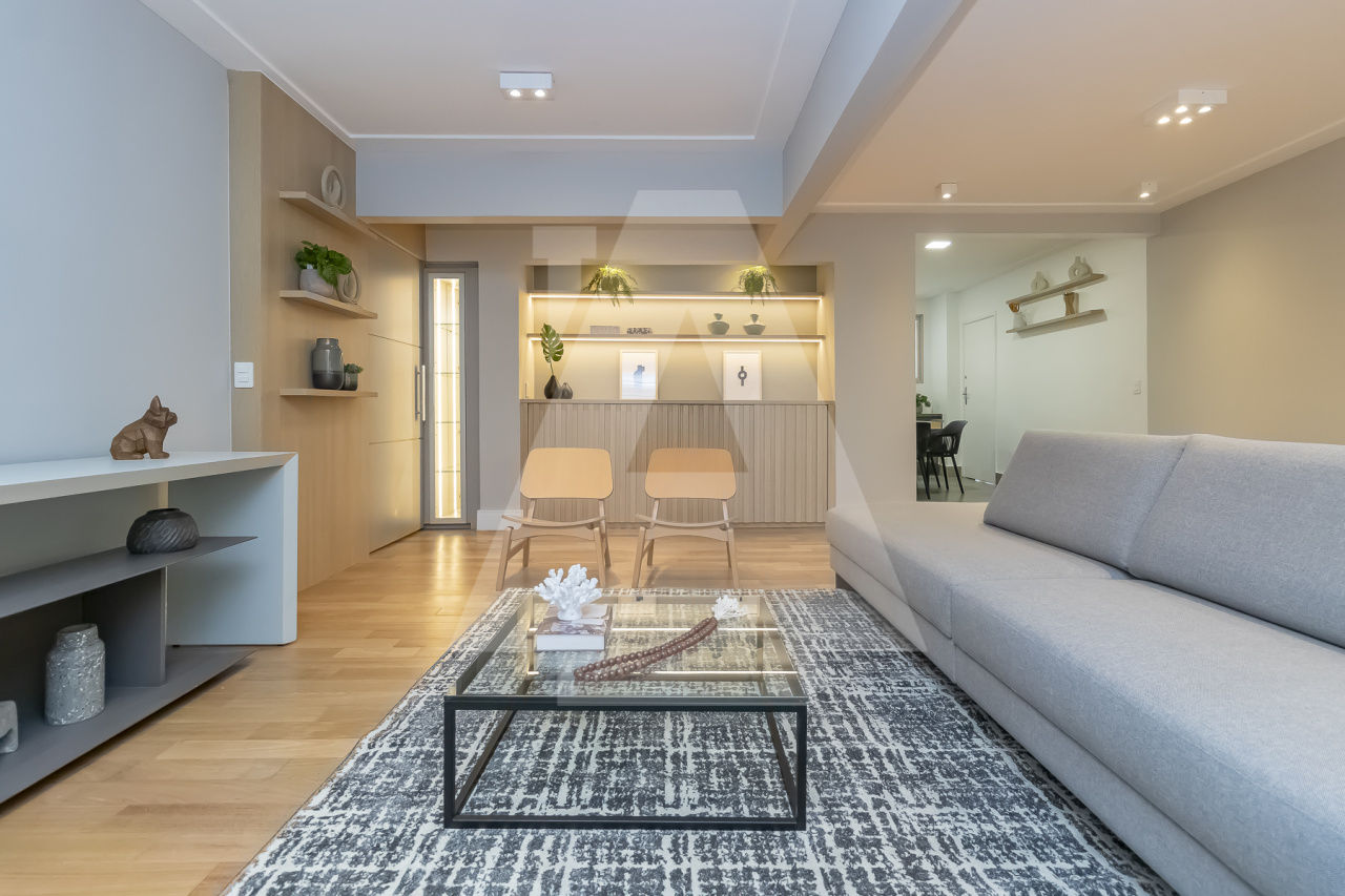 A decoração foi cuidadosamente planejada, criando um ambiente que combina estilo e praticidade. Os acabamentos de alta qualidade e a iluminação natural tornam cada canto deste apartamento especial.