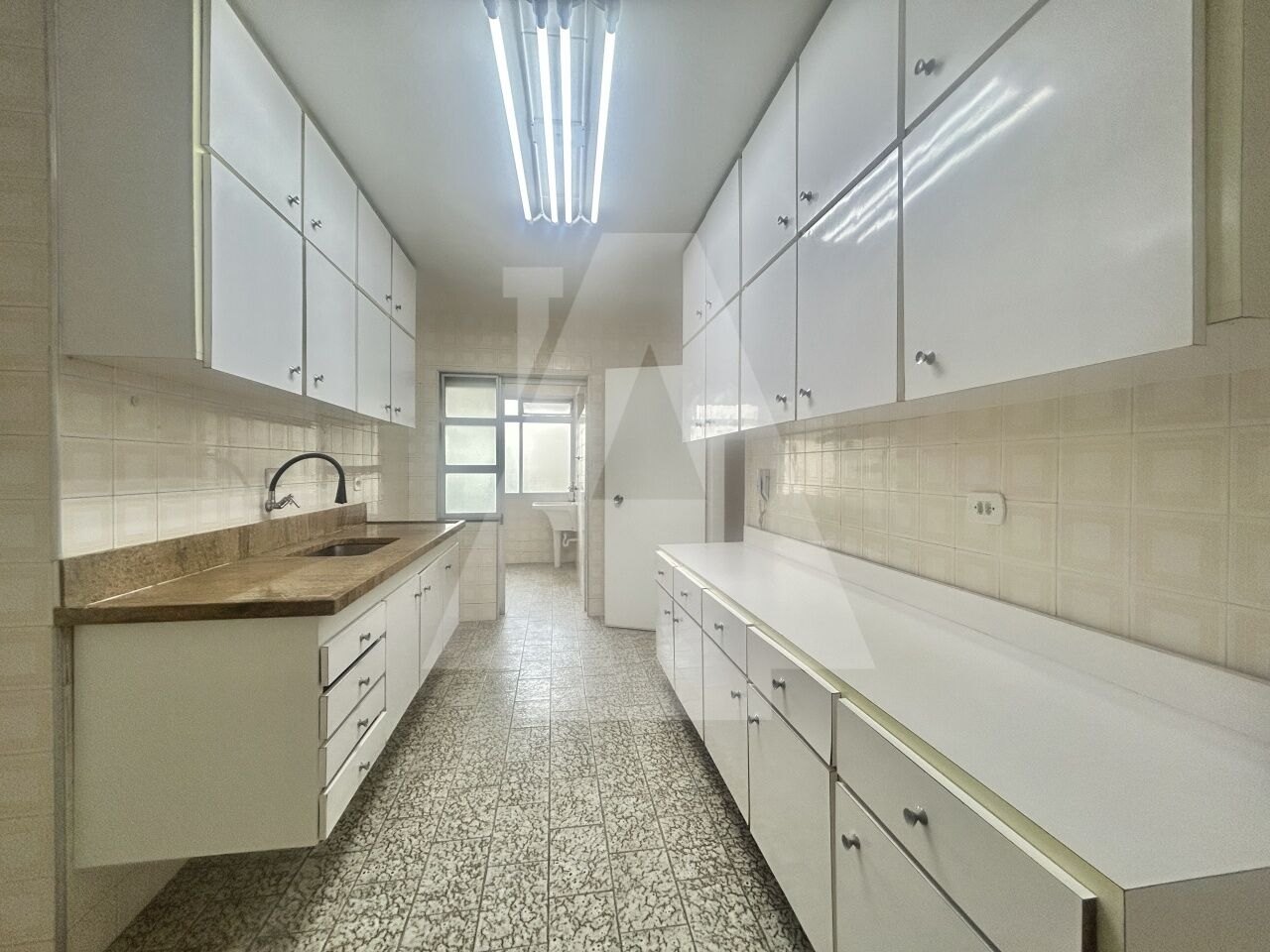 A cozinha é espaçosa, a área de serviço é bem arejada e ainda há uma dependência completa.