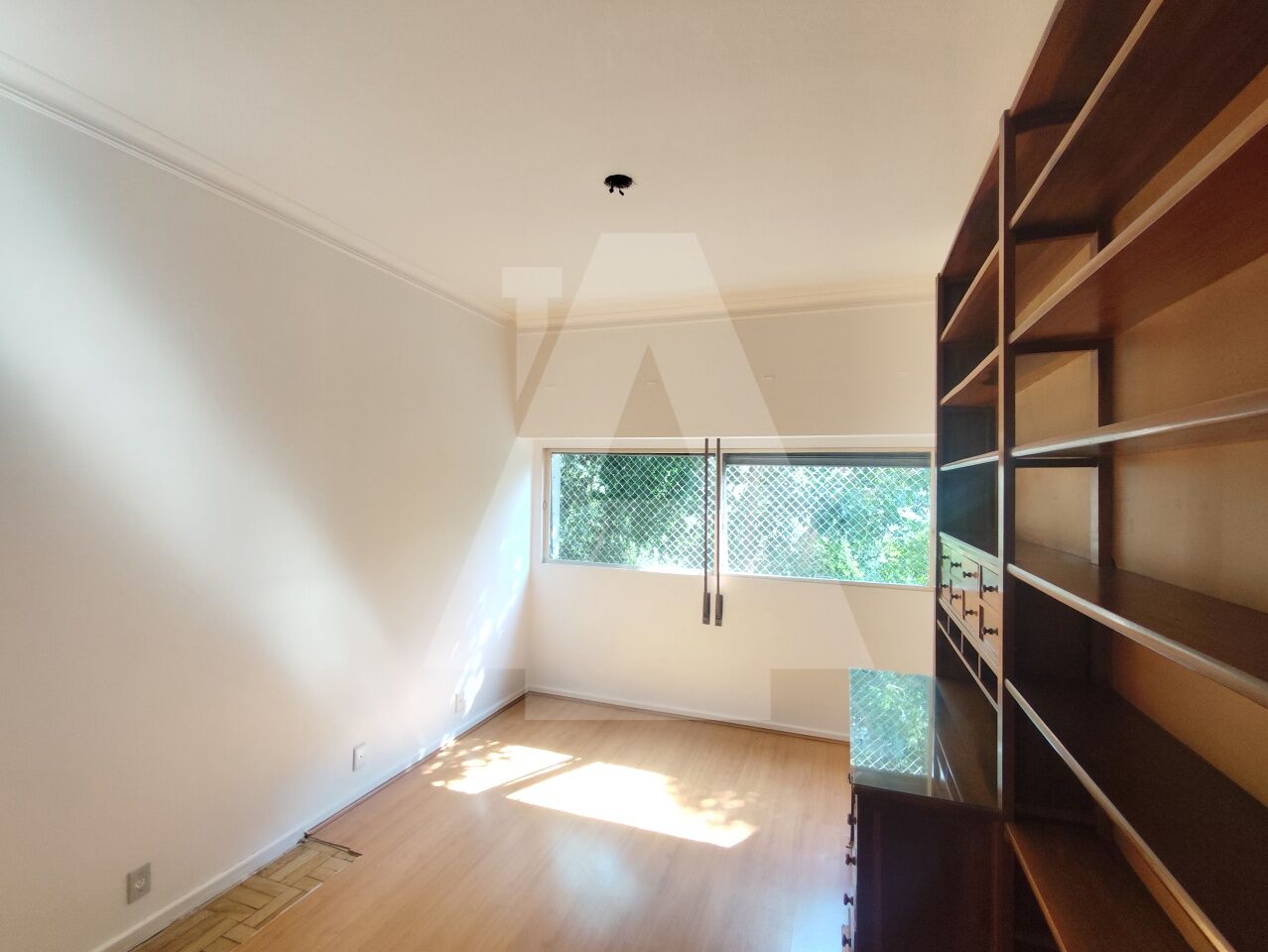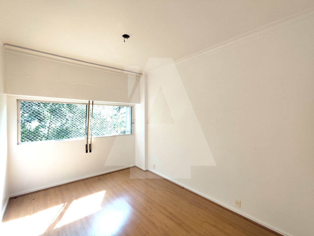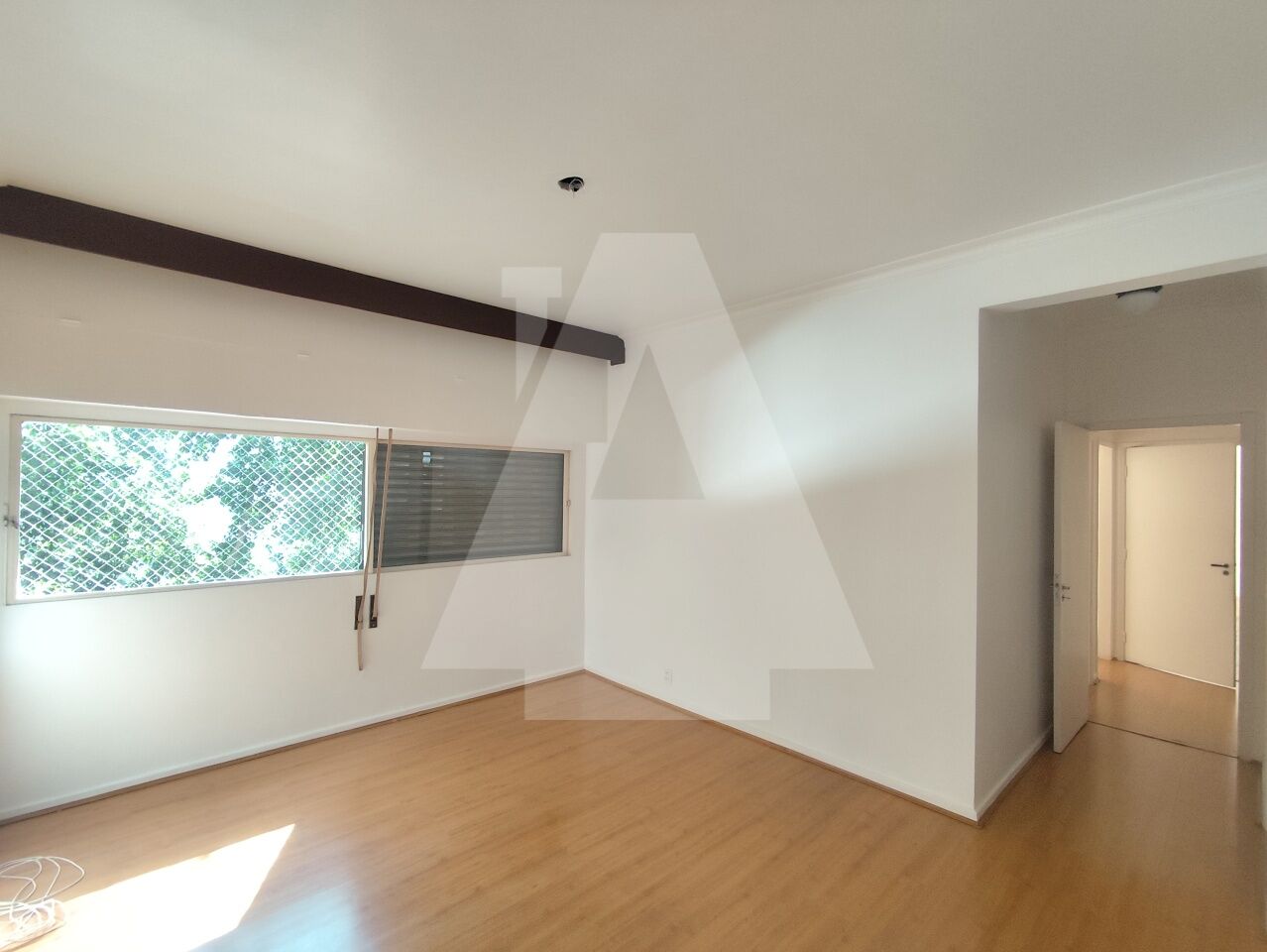 A sala ampla, permite a criação de dois ambientes e para completar temos um janelão com uma vista verde bem agradável.