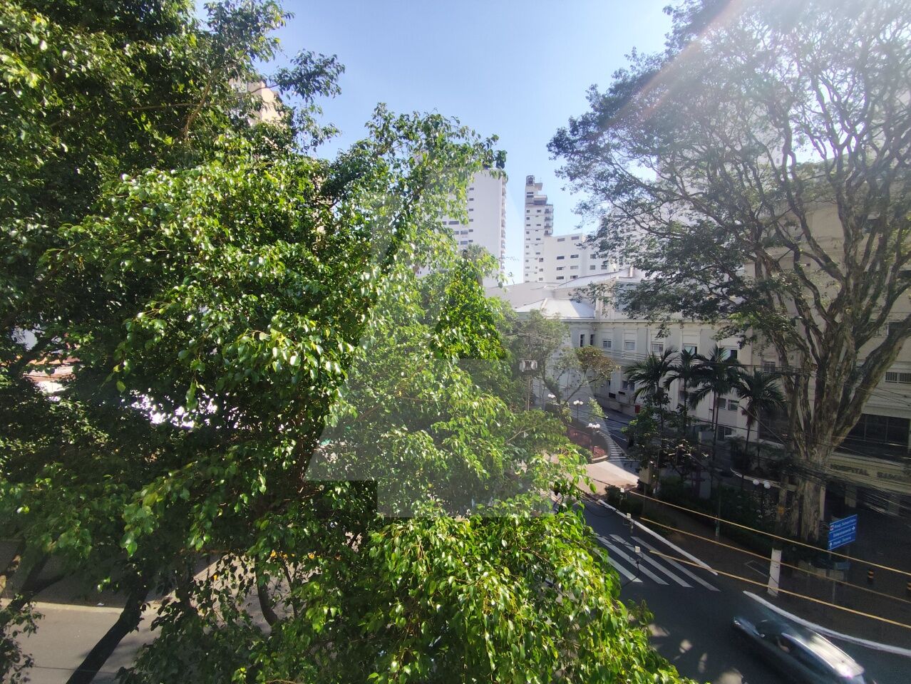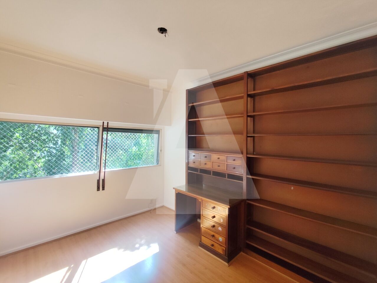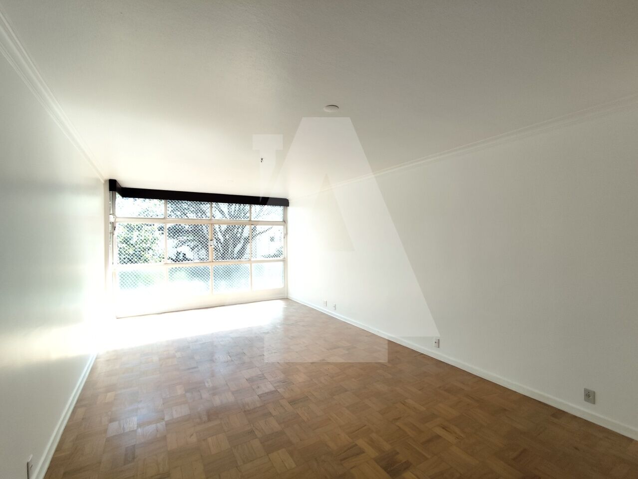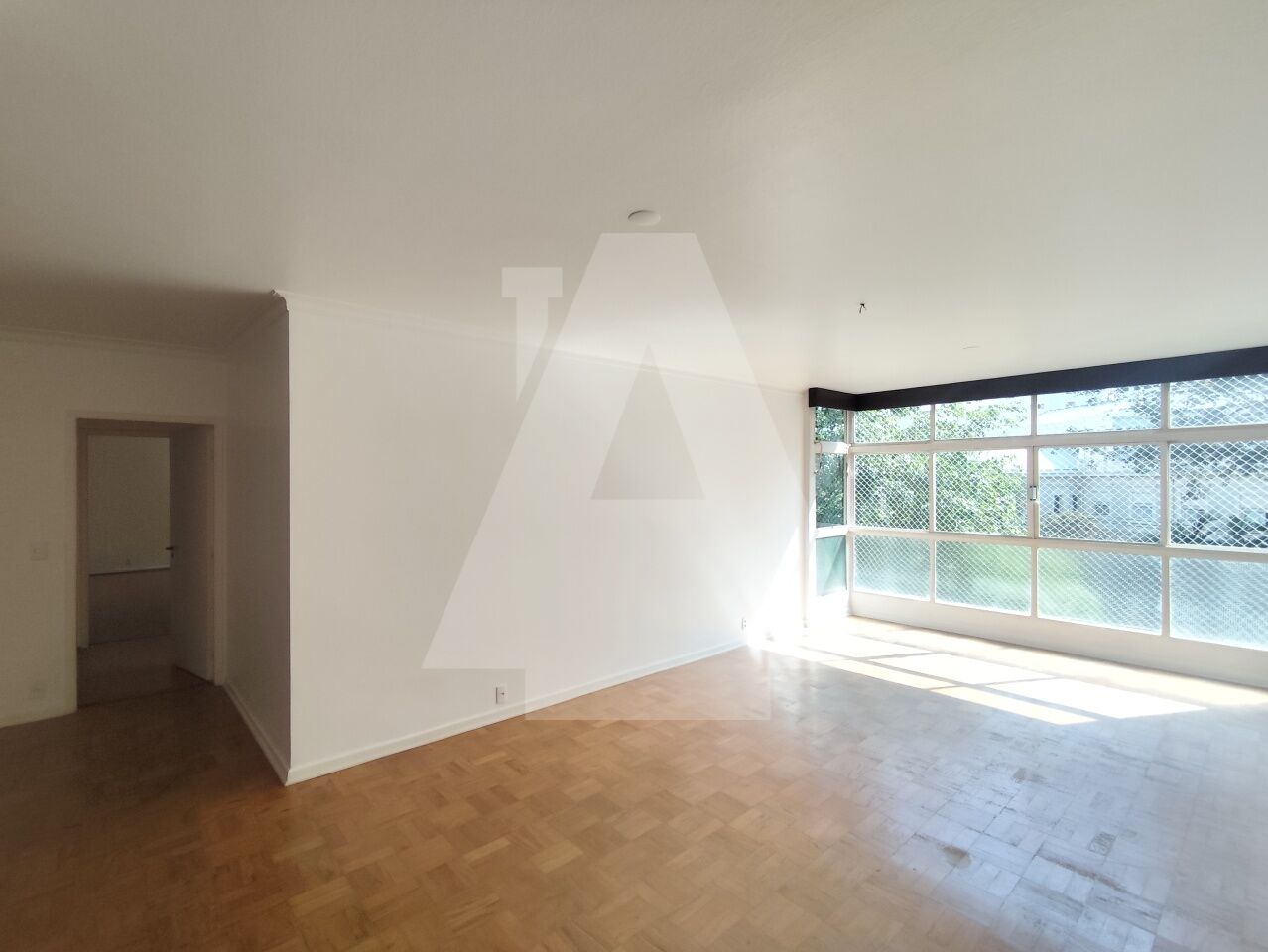 A sala ampla, permite a criação de dois ambientes e para completar temos um janelão com uma vista verde bem agradável.