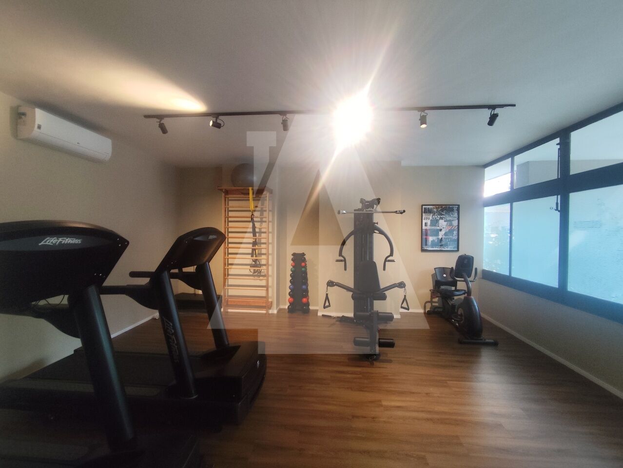 No prédio além da sala de ginástica, temos também uma sala privativa para massagens e salão de festas.