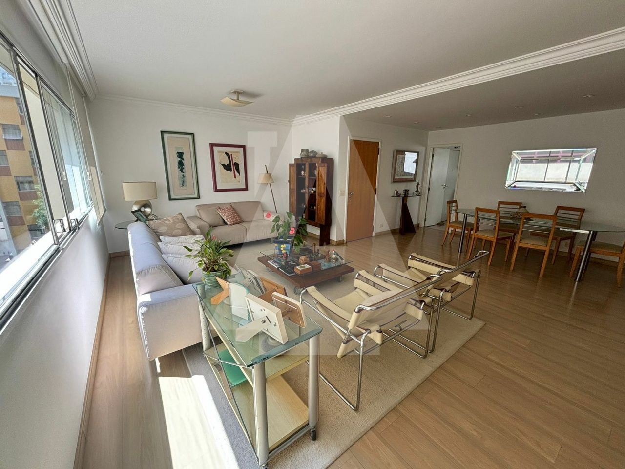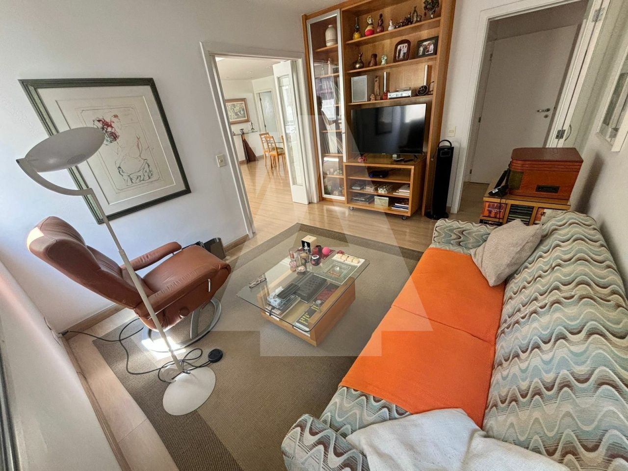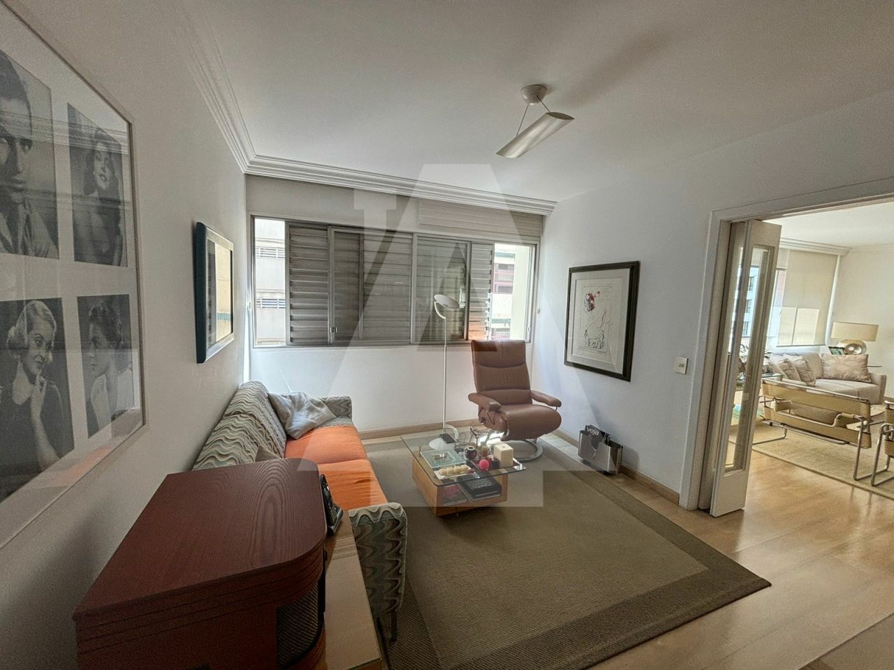 Sala para dois ambientes muito ampla com escritório e sala de tv. do lado, que se precisar, poderia ser incorporado como um terceiro ambiente de living.