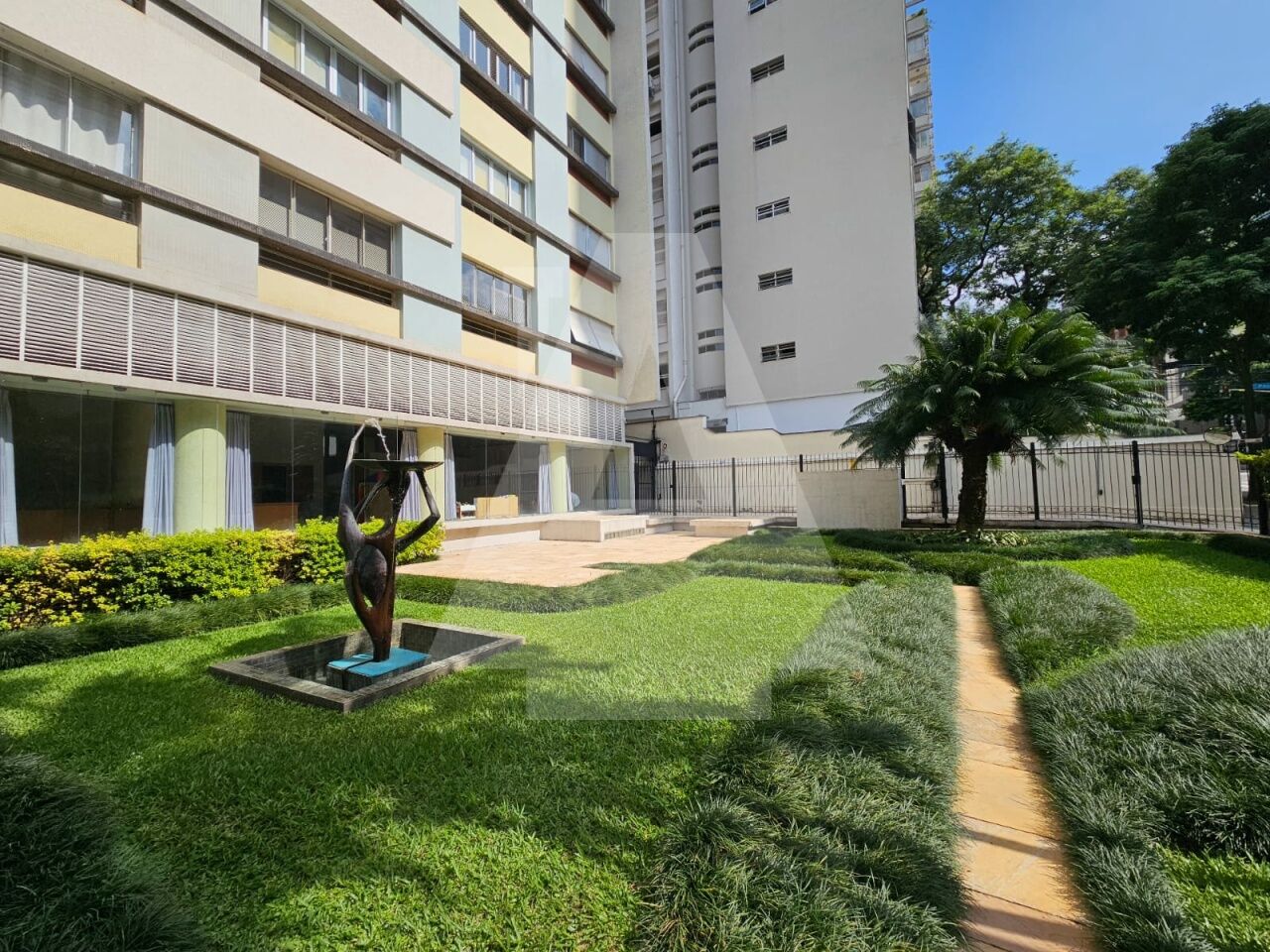 O prédio é lindo, construído em 1963 pela mesma construtora do Parque Higienopolis, a equipe de Jonas Gordon. O prédio é recuado, com um jardim maravilhoso que chama a atenção com um comedouro de pássaros e uma linda escultura.