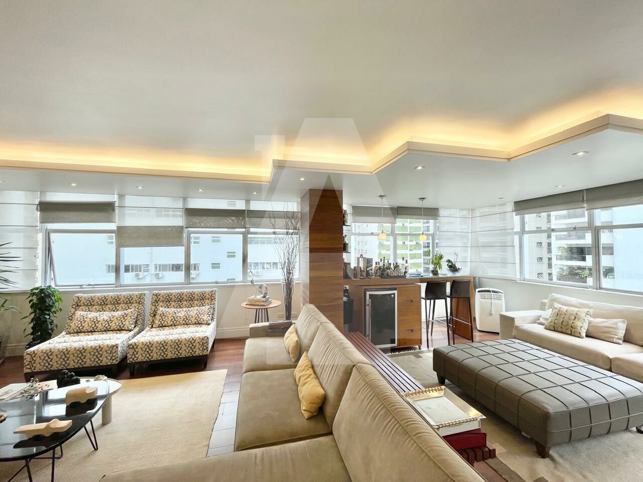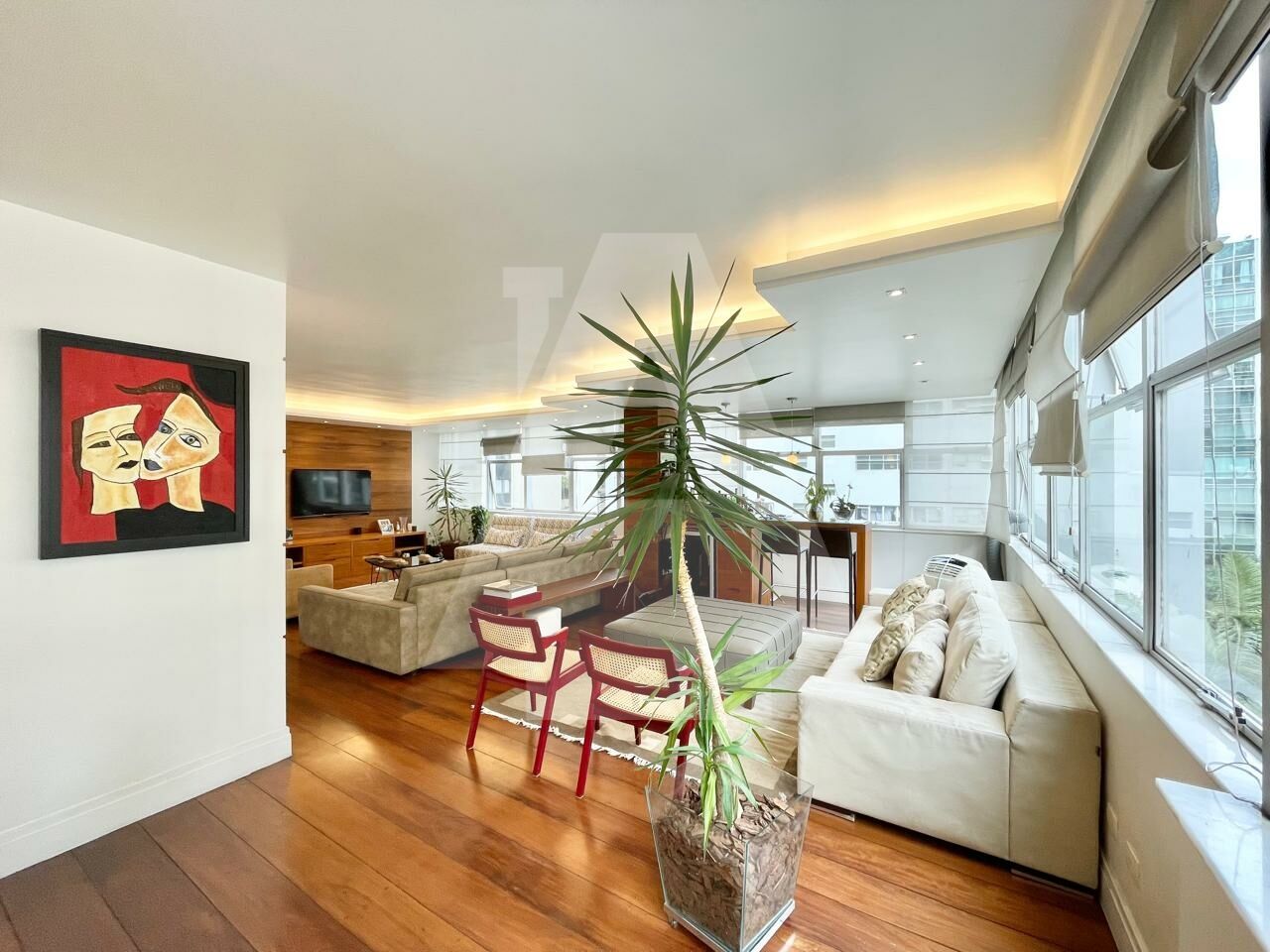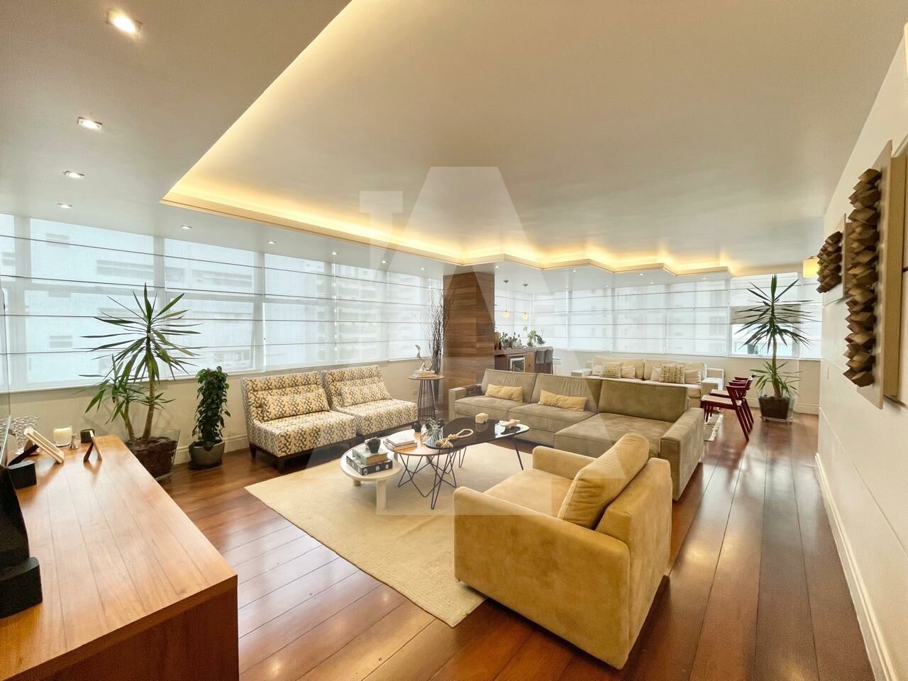 263 m² . living para três ambientes . janelões . piso em tábua corrida . lavabo . ar-condicionado . 4 dormitórios (2 suítes) . 2 vagas . área de serviço completa