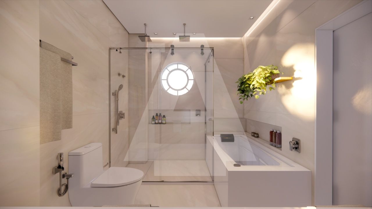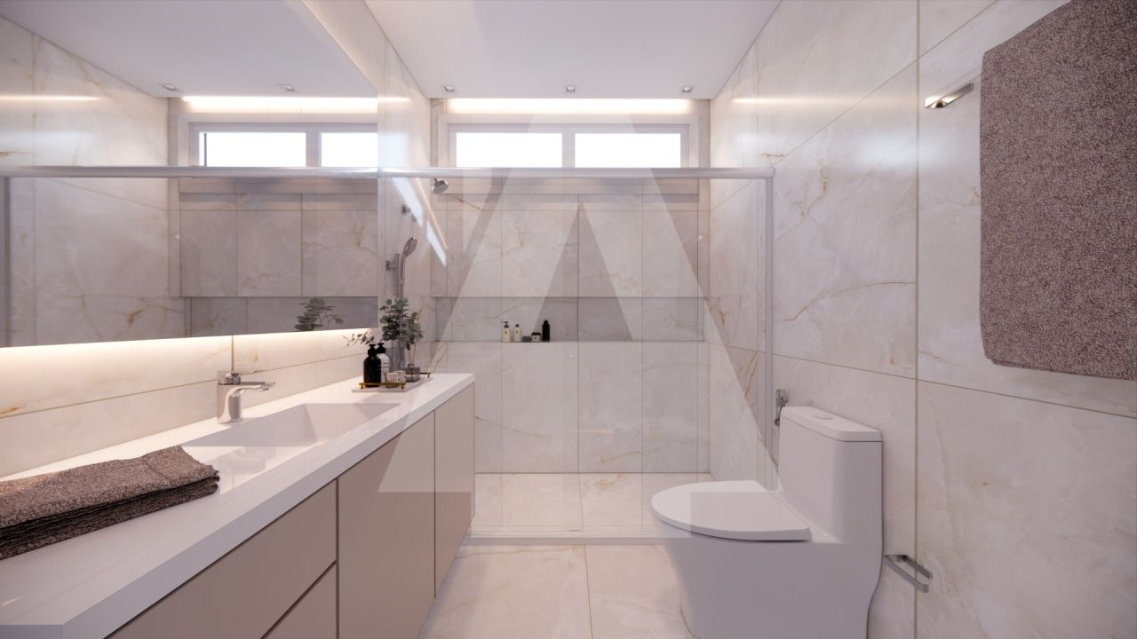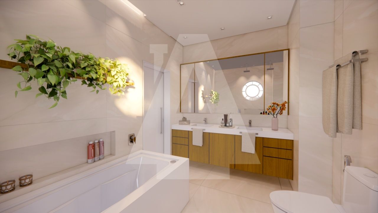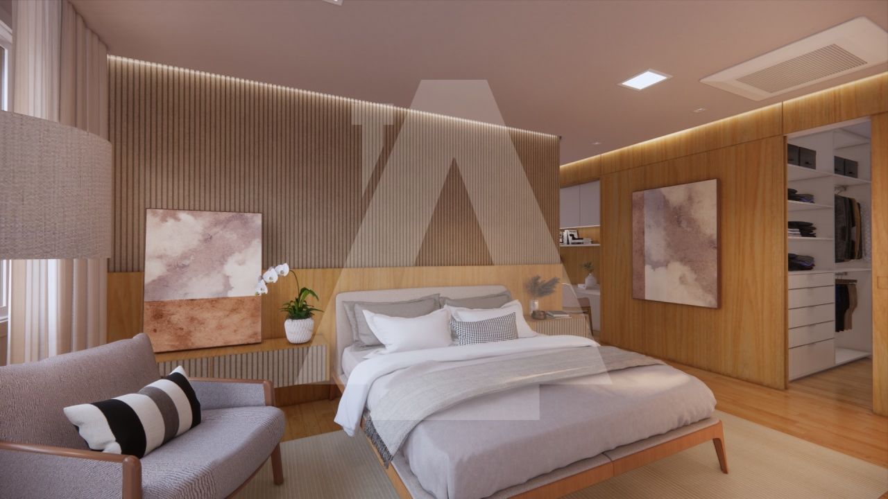 Já na área íntima, são 4 dormitórios muito espaçosos sendo duas suítes e um banheiro social para servir os outros dois dormitórios. Destaque para a suíte master com 47 m2 com dois walk-in closet, espaço para penteadeira/home office e banho spa: bancada com duas cubas, dois chuveiros de teto e banheira jacuzzi com hidromassagem para relaxar ao final do dia.