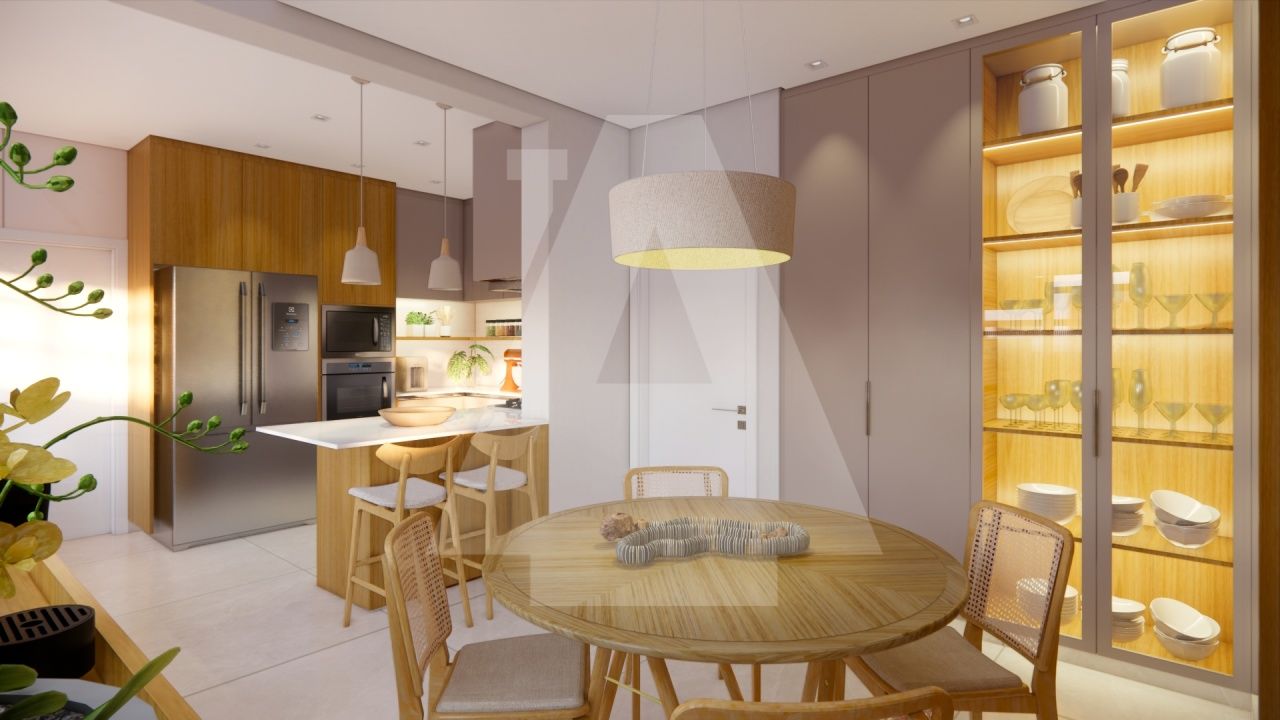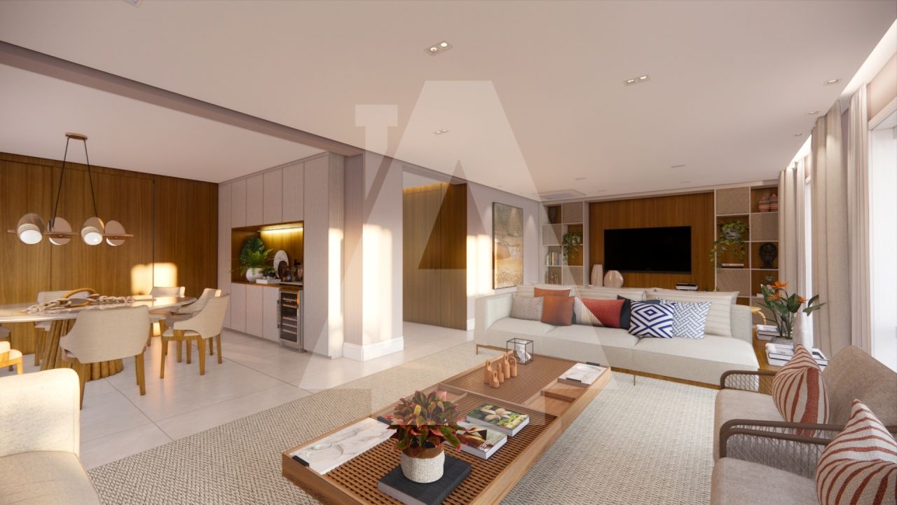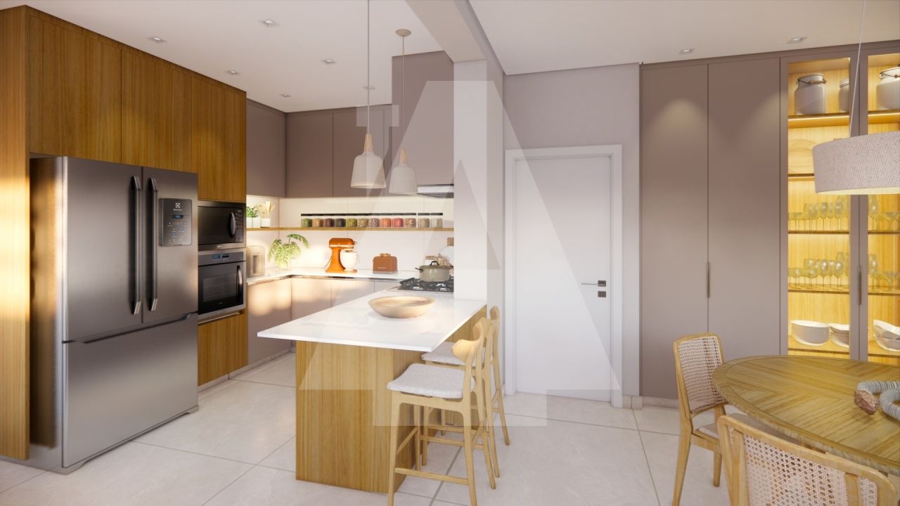 O amplo living, com painéis em lâmina de madeira freijó, proporciona um ambiente acolhedor e convidativo para receber amigos e familiares em ocasiões especiais. A cozinha gourmet com ilha e copa é moderna e funcional, perfeita para quem aprecia a arte da culinária e pode ser facilmente integrada à sala de jantar, sempre que a família desejar.