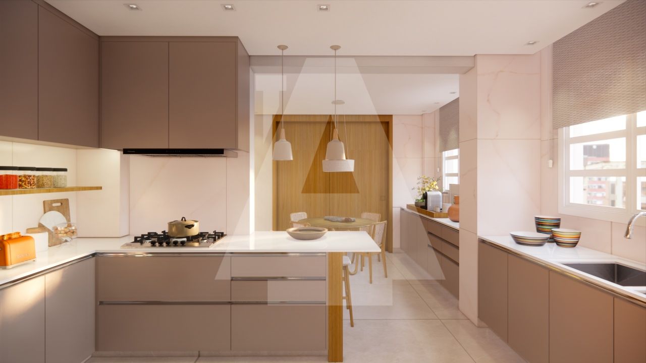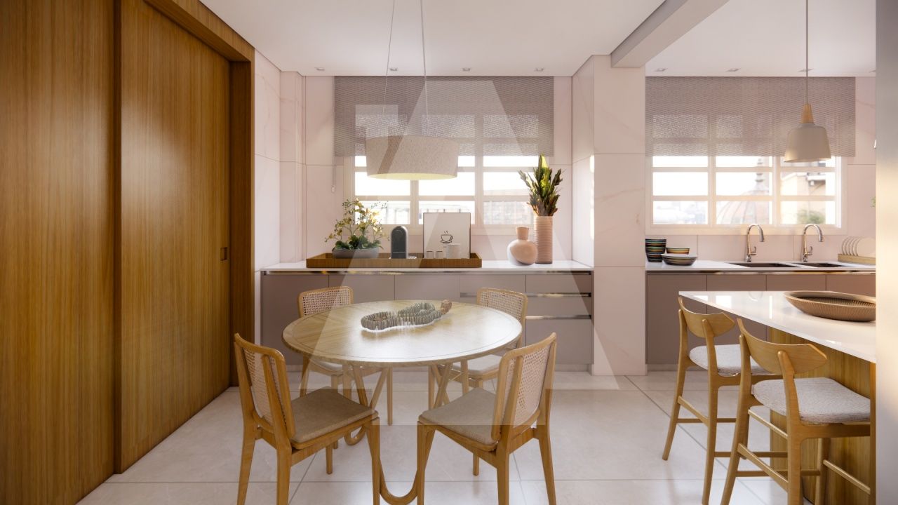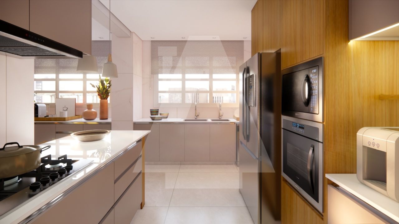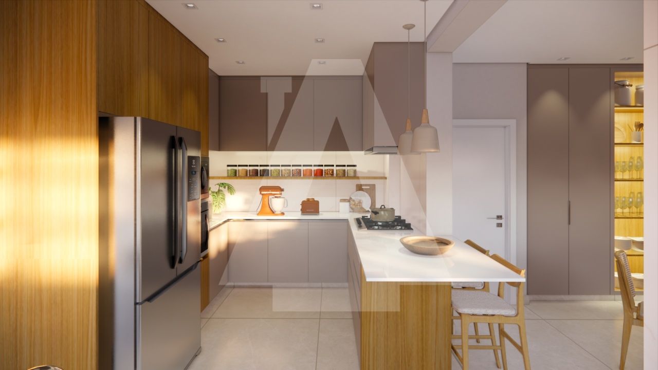 O amplo living, com painéis em lâmina de madeira freijó, proporciona um ambiente acolhedor e convidativo para receber amigos e familiares em ocasiões especiais. A cozinha gourmet com ilha e copa é moderna e funcional, perfeita para quem aprecia a arte da culinária e pode ser facilmente integrada à sala de jantar, sempre que a família desejar.