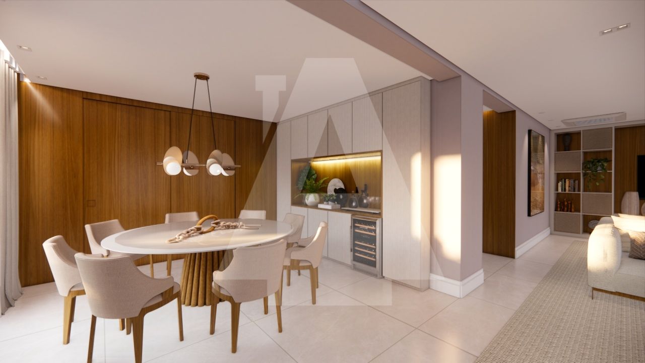 São 280m², 4 quartos sendo 2 suítes, living com três ambientes, Lavabo, cozinha gourmet com espaço para copa, ampla área de serviço com despenseiro e armários, dormitório e banheiro de serviço e 2 vagas de garagem.
