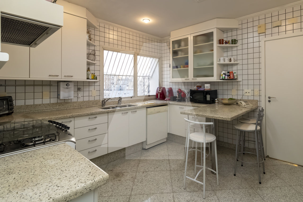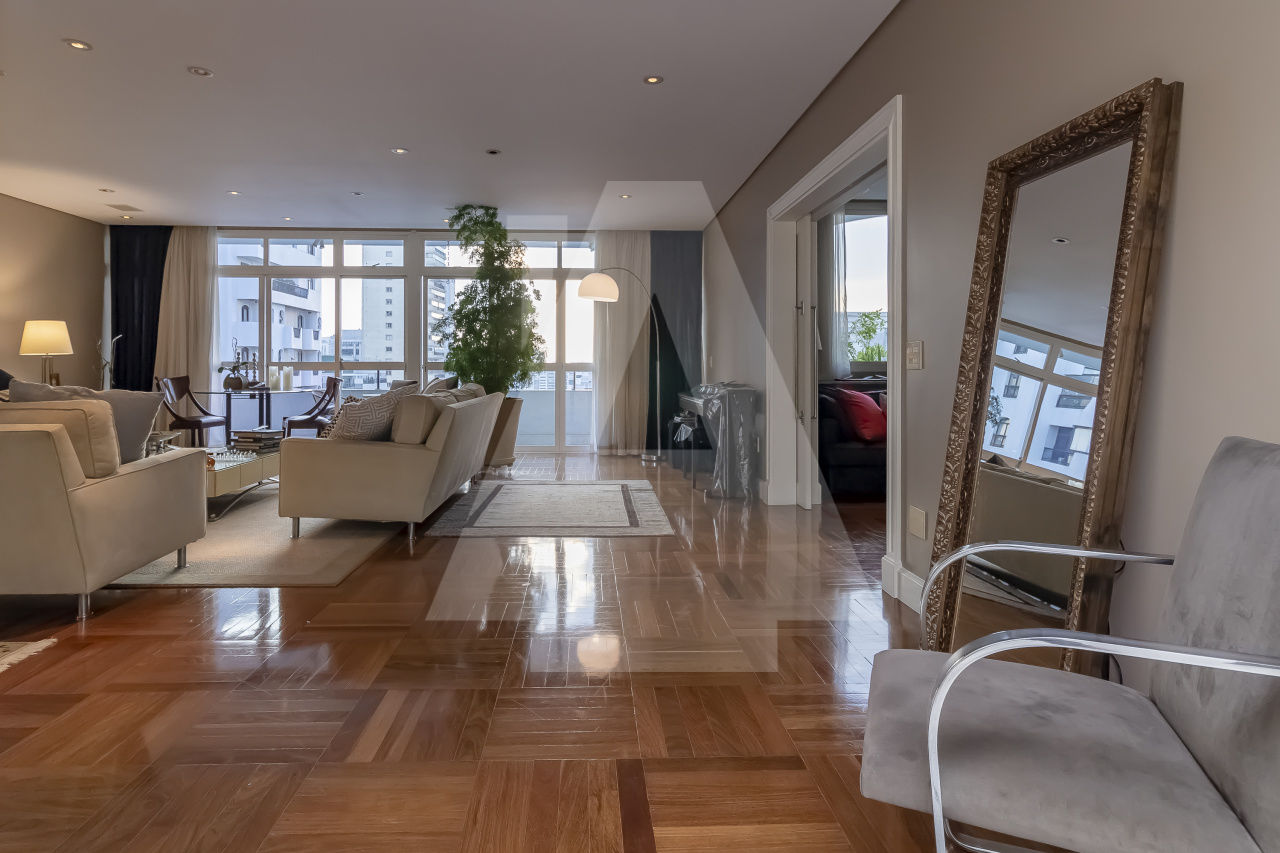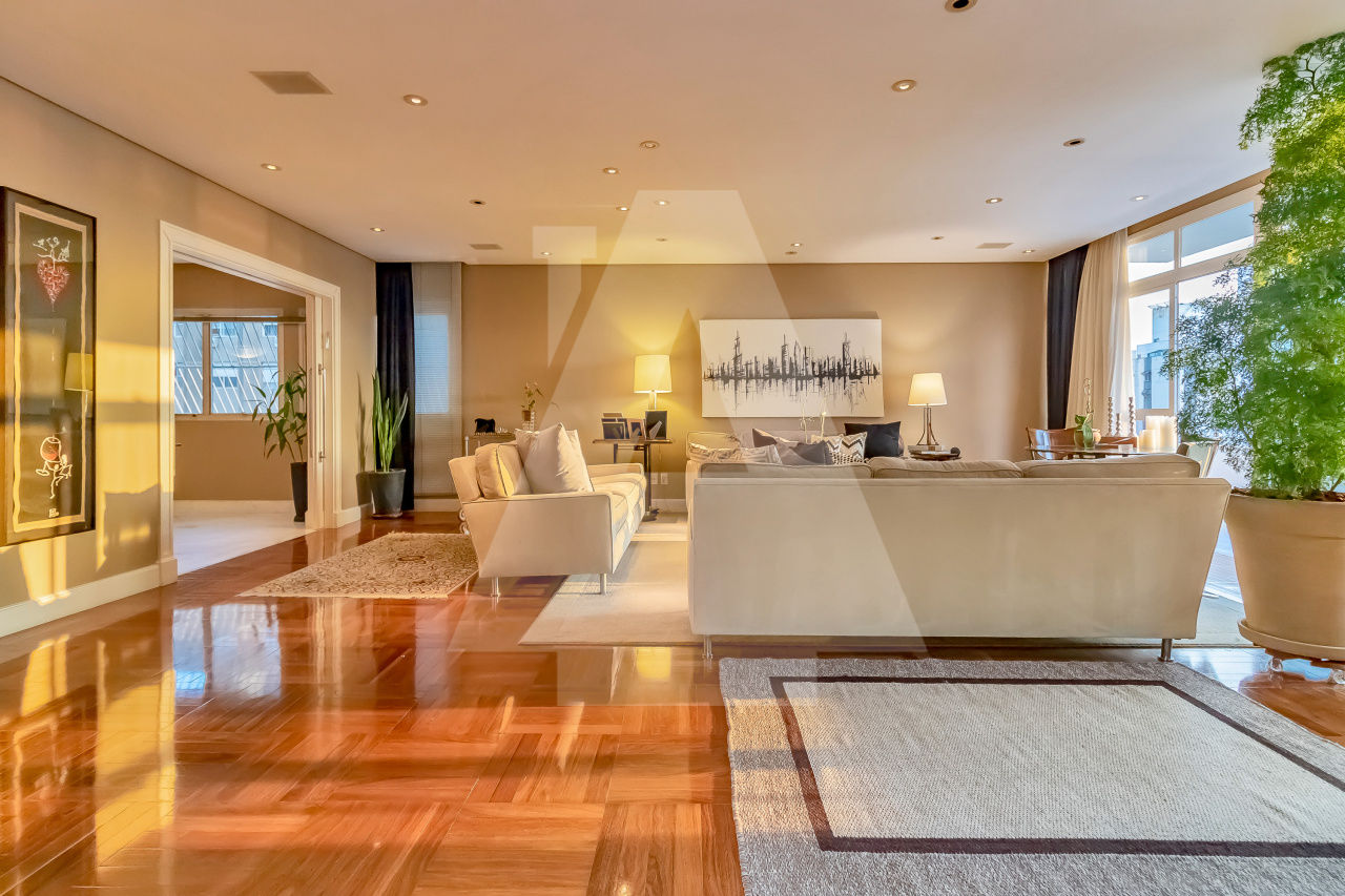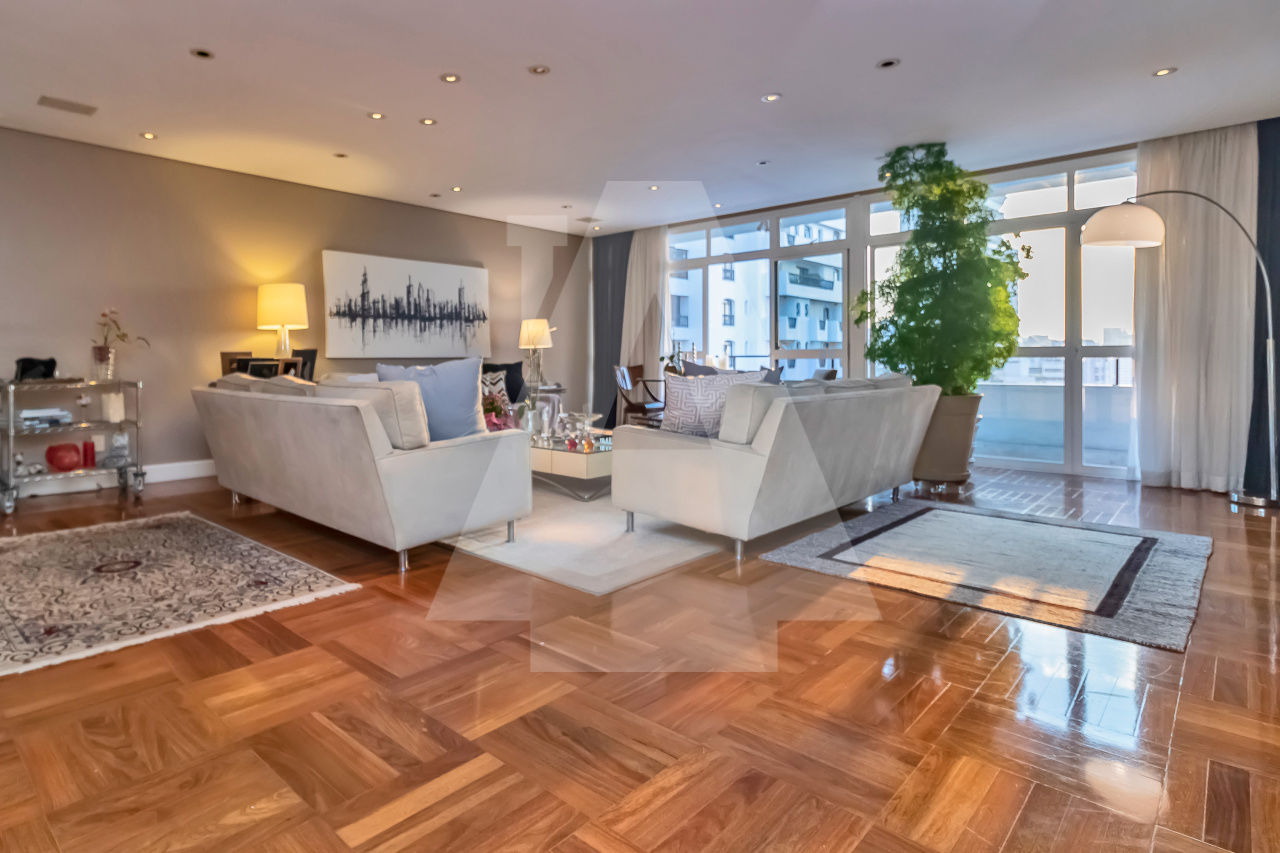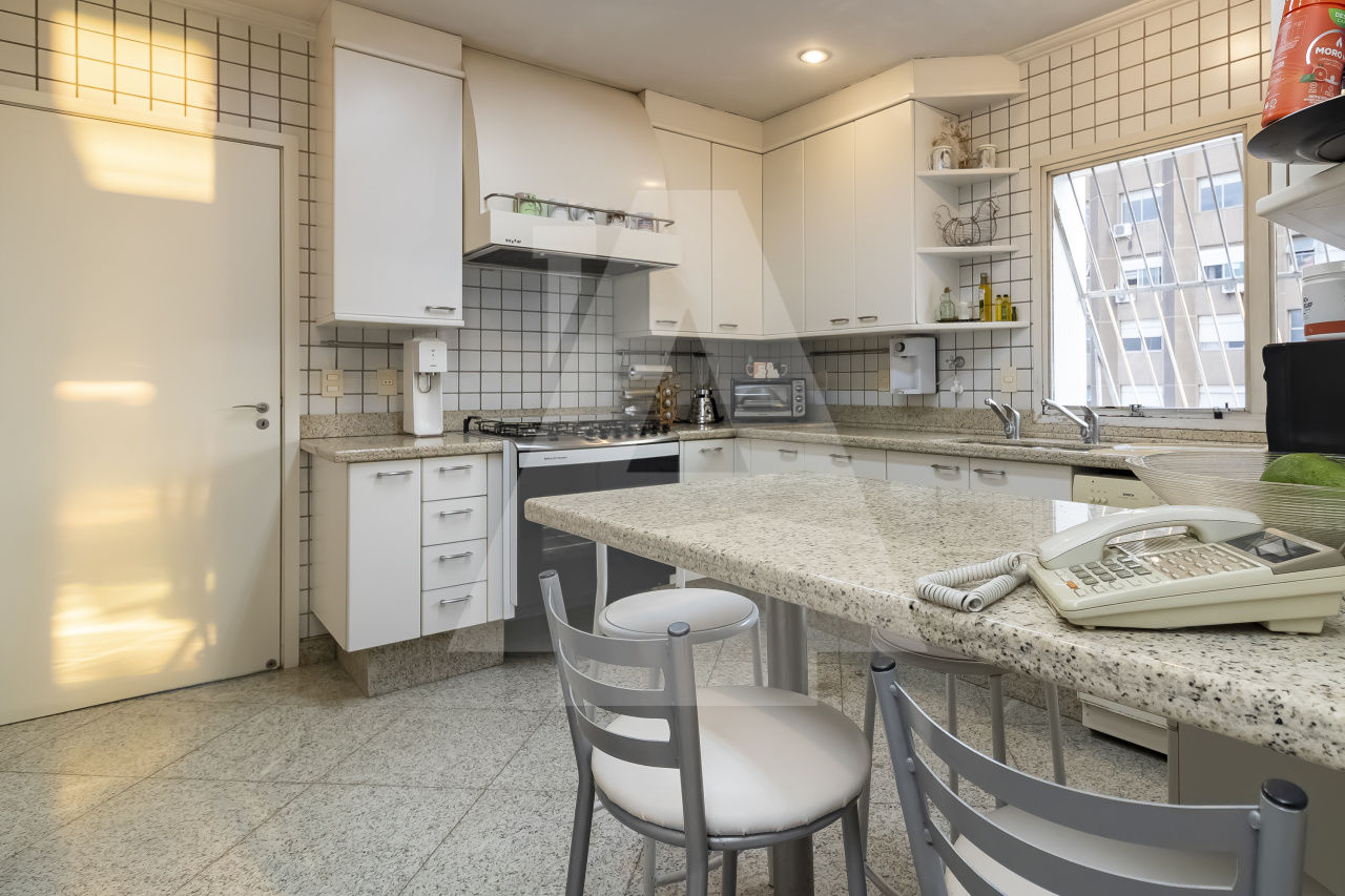 São 306 m² Área útil, 4 Dormitórios sendo três suítes, amplo living para até 3 ambientes com um delicioso terraço, Lavabo e área de serviço completa. O apartamento foi totalmente reformado Reformado com acabamentos finos e tacos de madeira Madipê. Cozinha Kitchens
