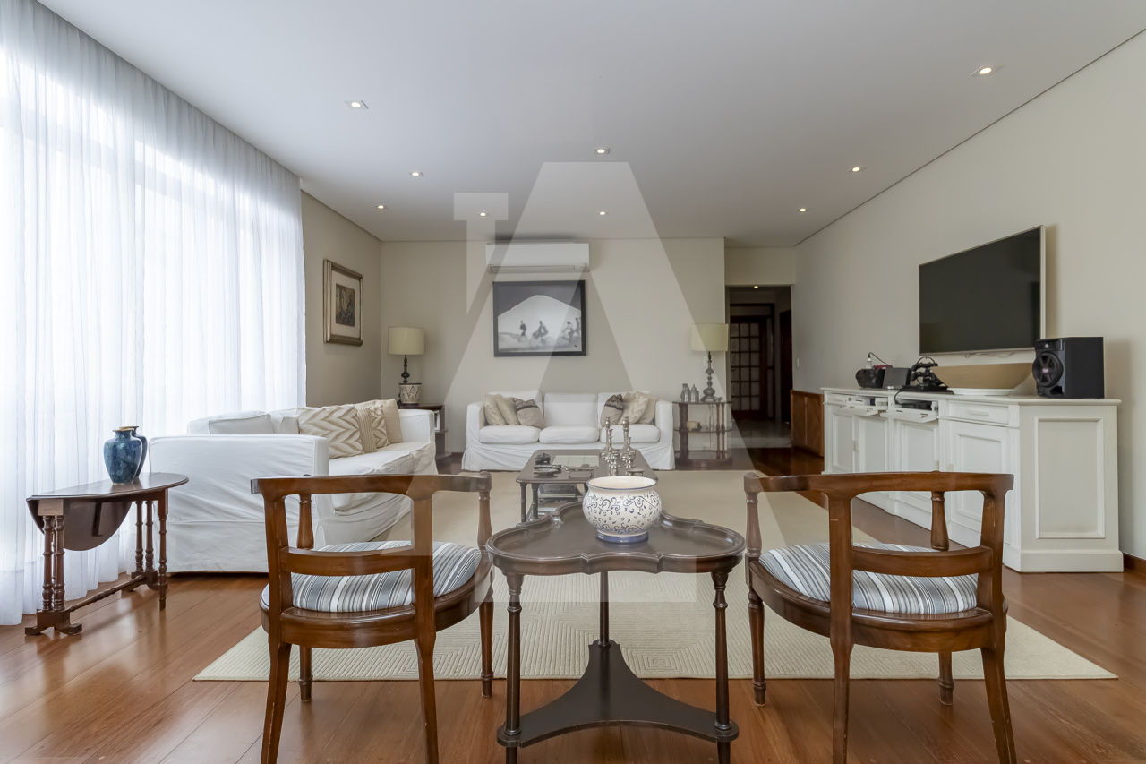 Apartamento muito bem localizado, com ambientes espaçosos e muito iluminados por conta da disposição e tamanho das janelas que fazem toda a diferença. Com uma decoração elegante e de muita personalidade em cada detalhe escolhido pelos moradores. São 4 suítes bem amplas, todas com armários. Lavabo, copa/cozinha e área de serviço. Conta com 2 vagas na garagem.