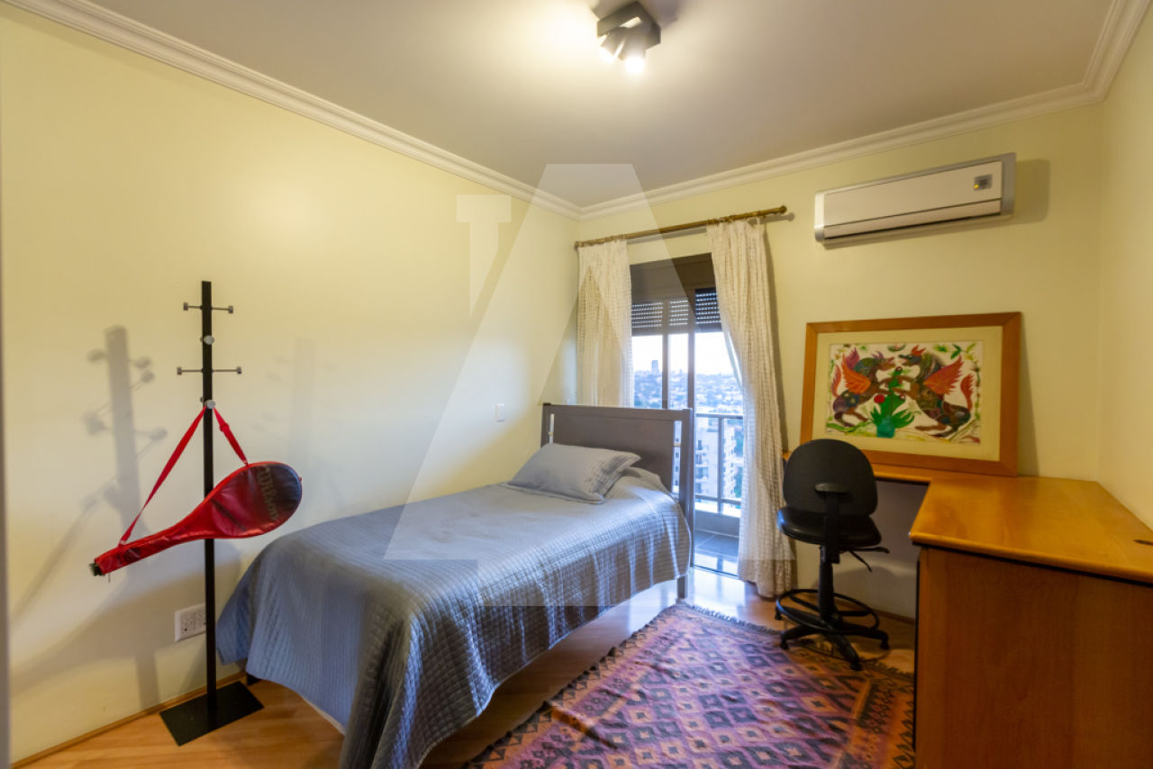 Em uma das ruas mais procuradas do bairro, um apartamento com muito espaço e uma planta muito bem dividida. O living possui uma ampla varanda em L, de onde se pode apreciar uma linda vista e de quebra ainda é possível contemplar o pôr do sol. Na ala íntima são quatro suítes, todas com terraço e ar-condicionado, além de um hall íntimo, que pode funcionar como sala de TV e/ou escritório. Na ala de apoio, copa, cozinha e uma espaçosa área de serviço com dependência completa. Para completar são quatro vagas de garagem e um condomínio com lazer para toda família! Agende sua visita
