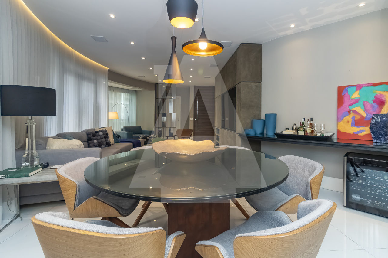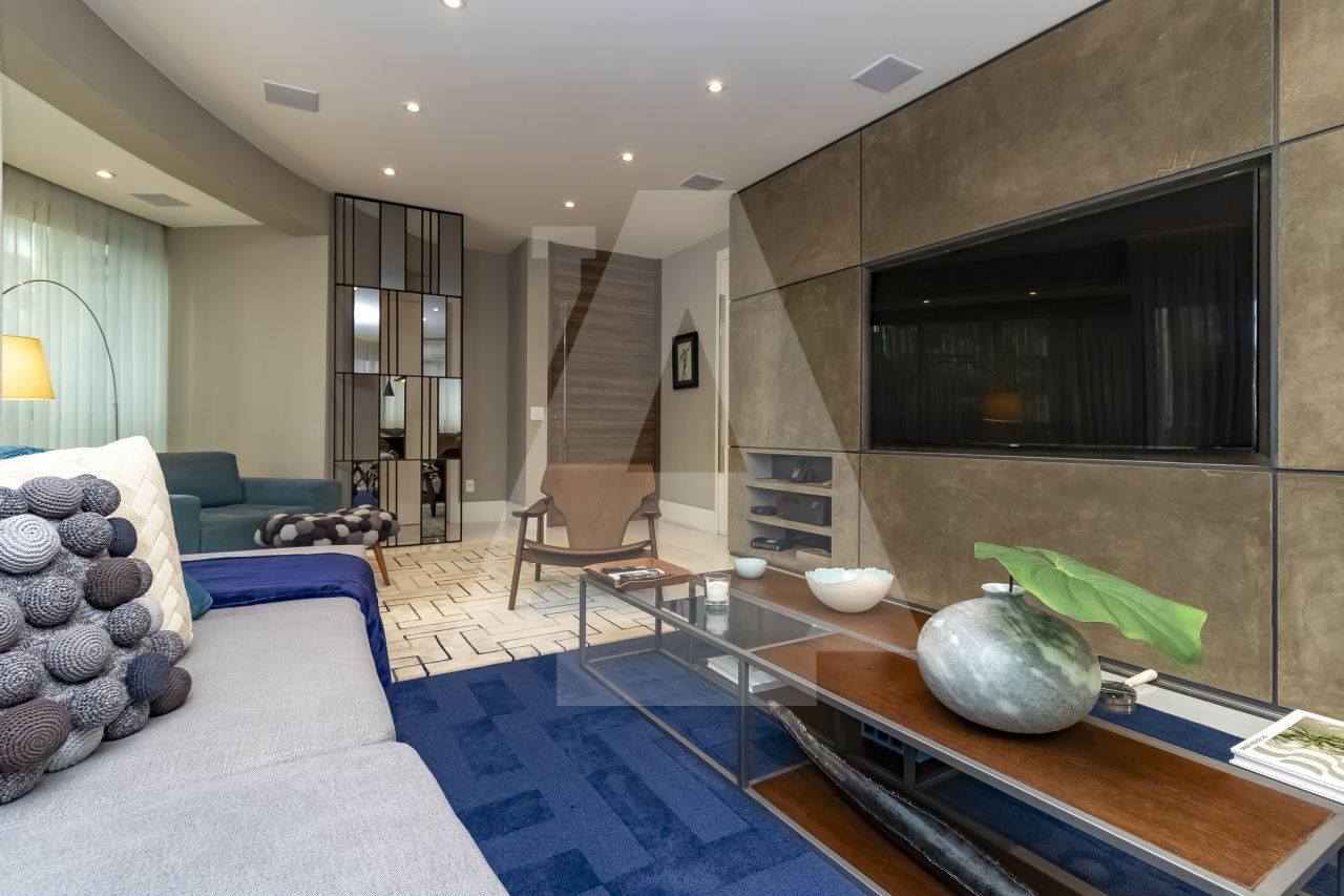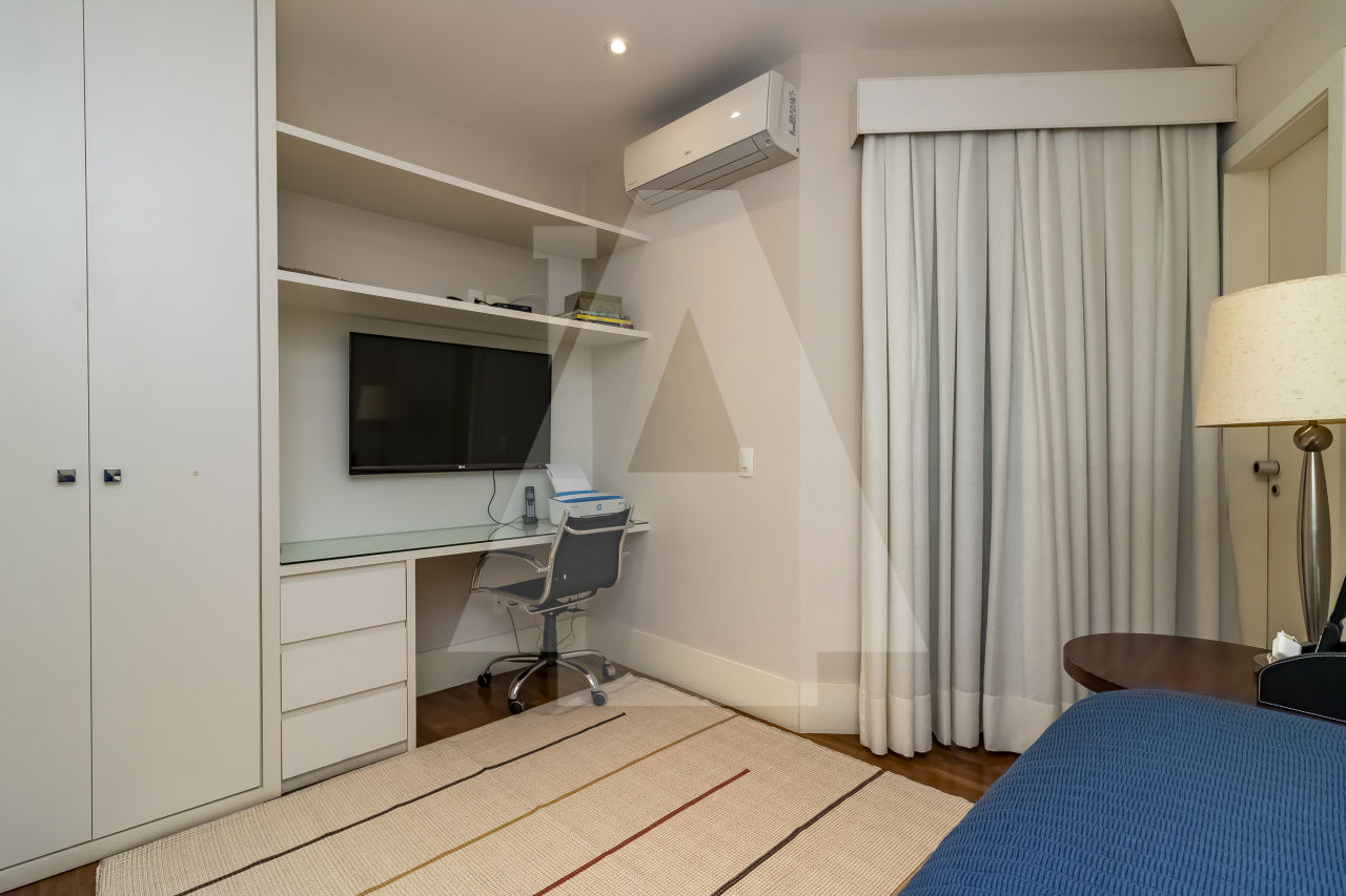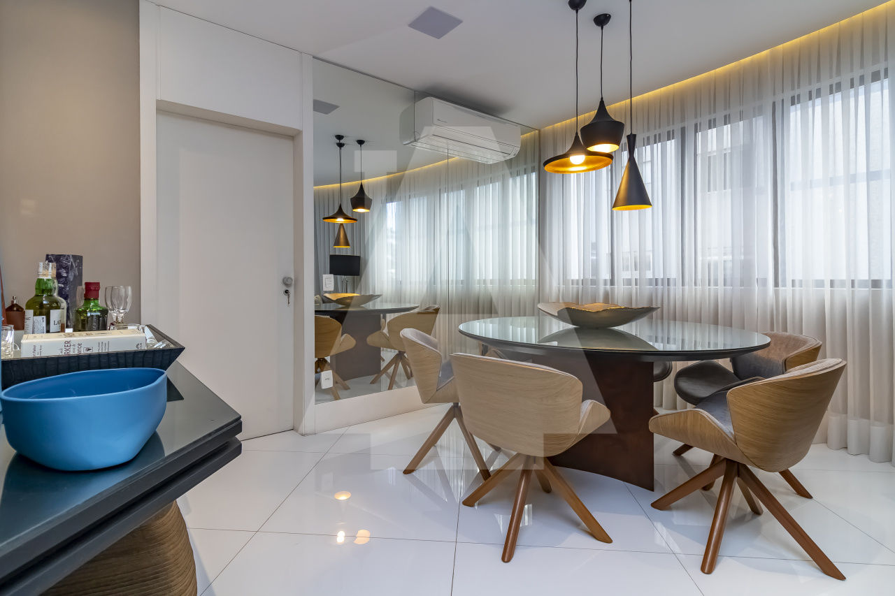 São três espaçosas salas, ar condicionado, todo decorado, pronto para entrar. Além disso, este apartamento possui duas vagas de garagem.