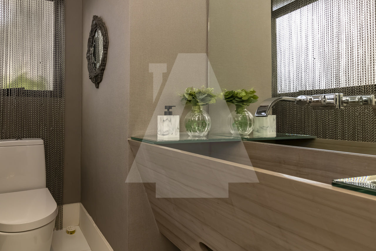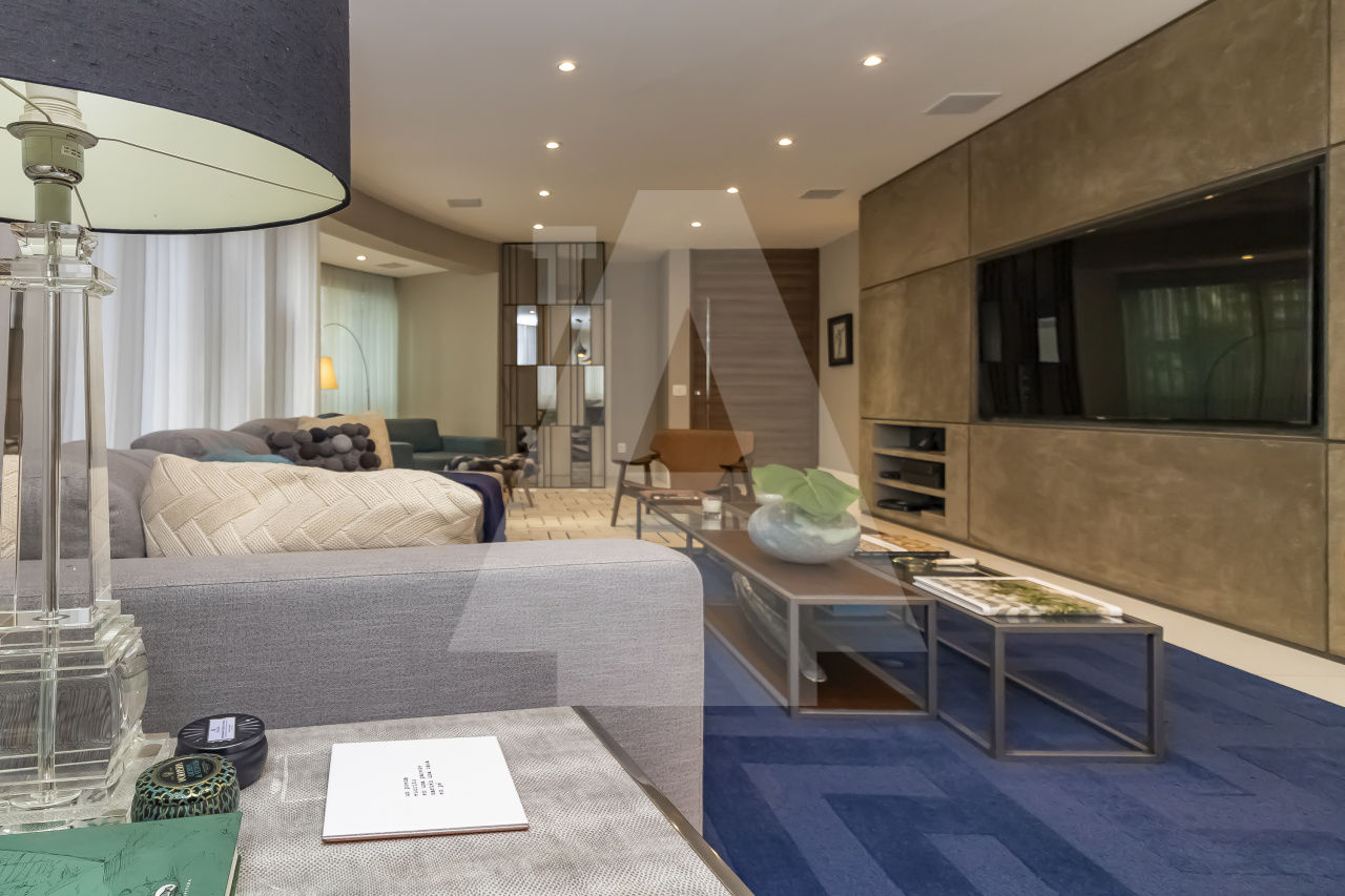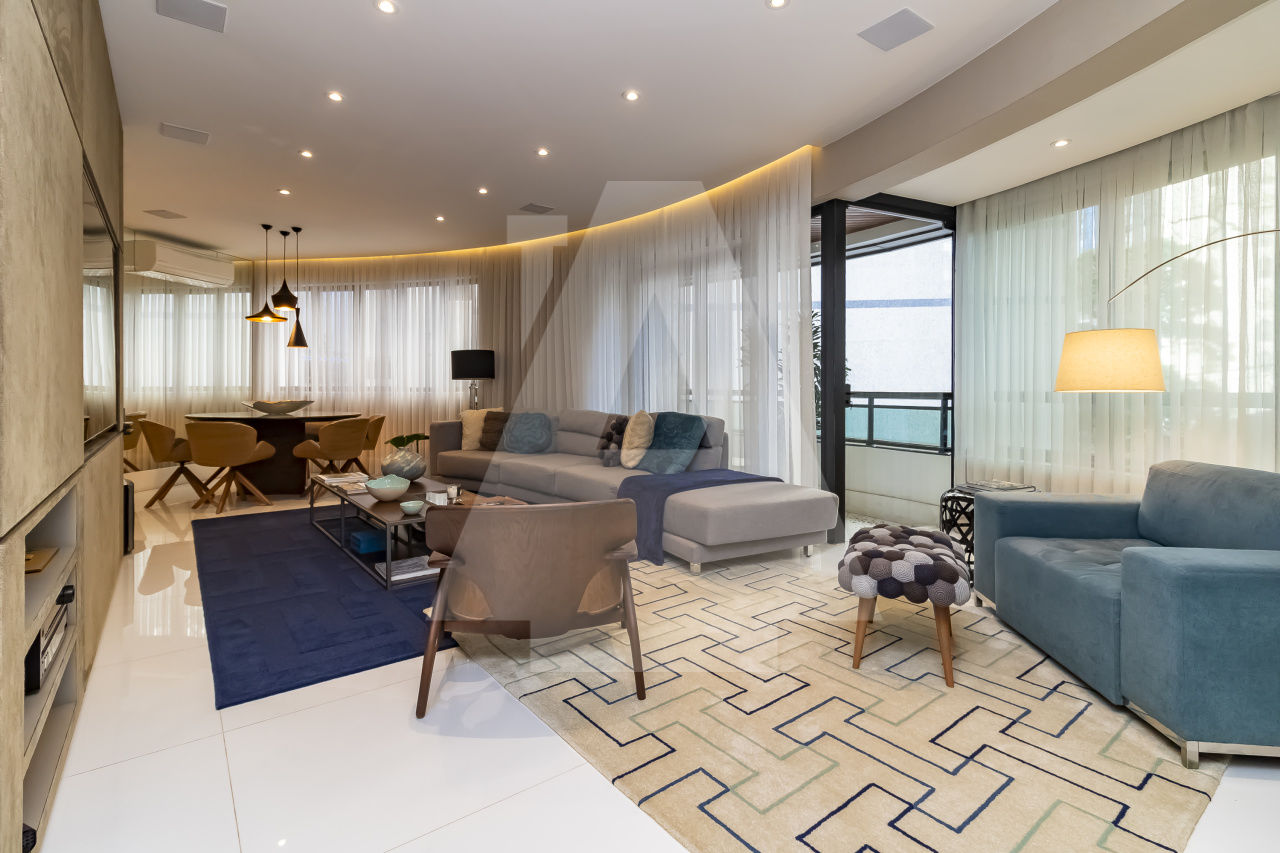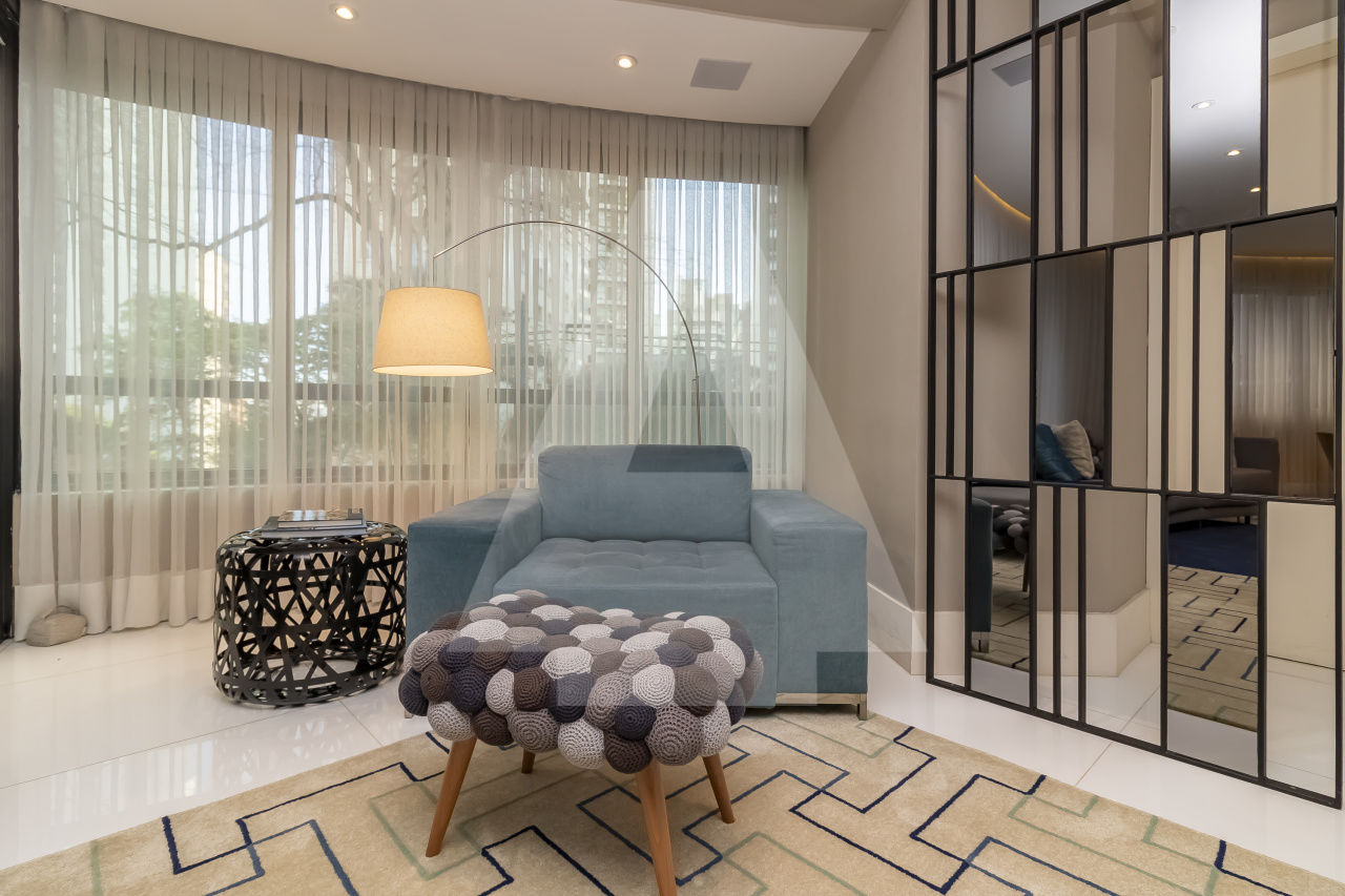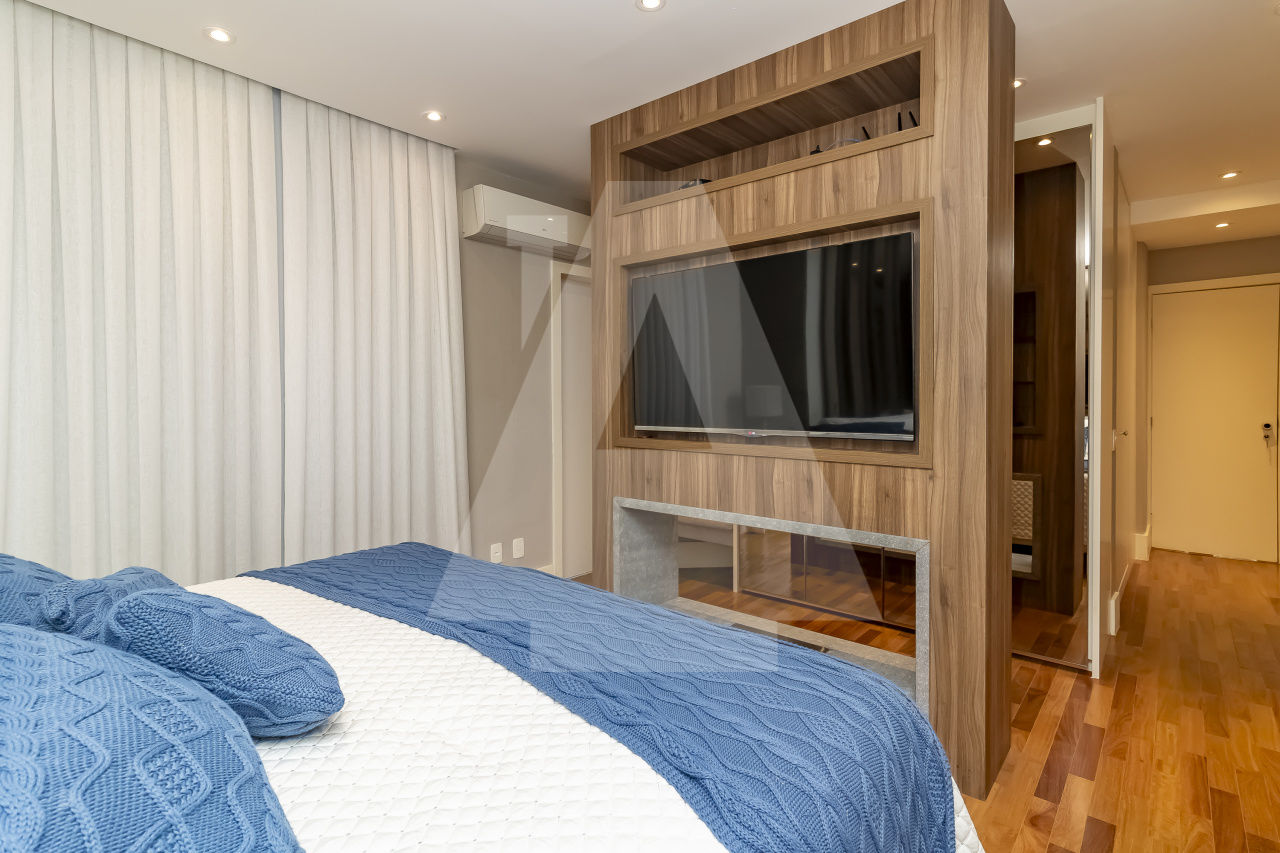 São três espaçosas salas, ar condicionado, todo decorado, pronto para entrar. Além disso, este apartamento possui duas vagas de garagem.