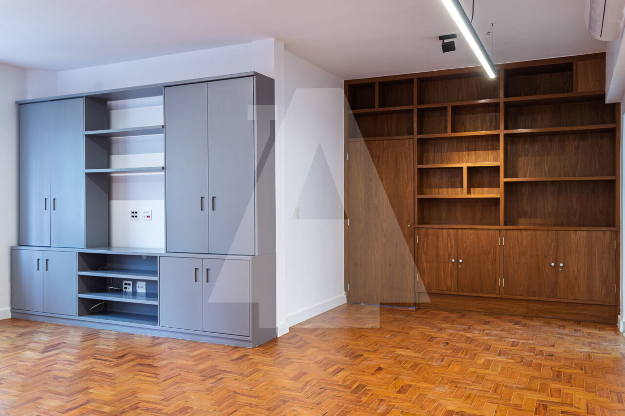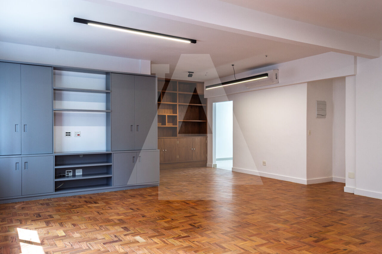 Localizado na Alameda Jaú, entre as alamedas Joaquim Eugênio de Lima e Campinas, esse apto com 162,65m2 de área útil, está sendo colocado à venda reformado e equipado.
