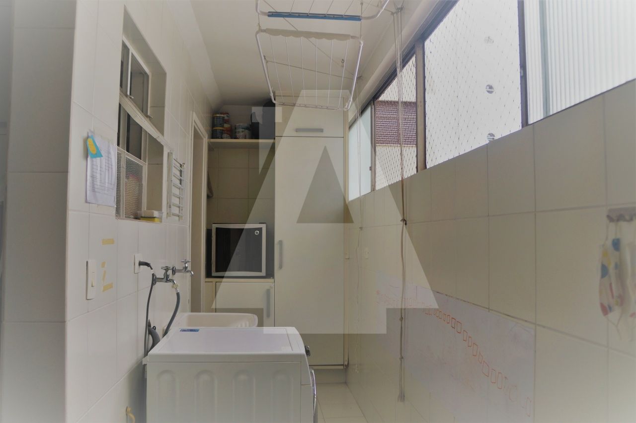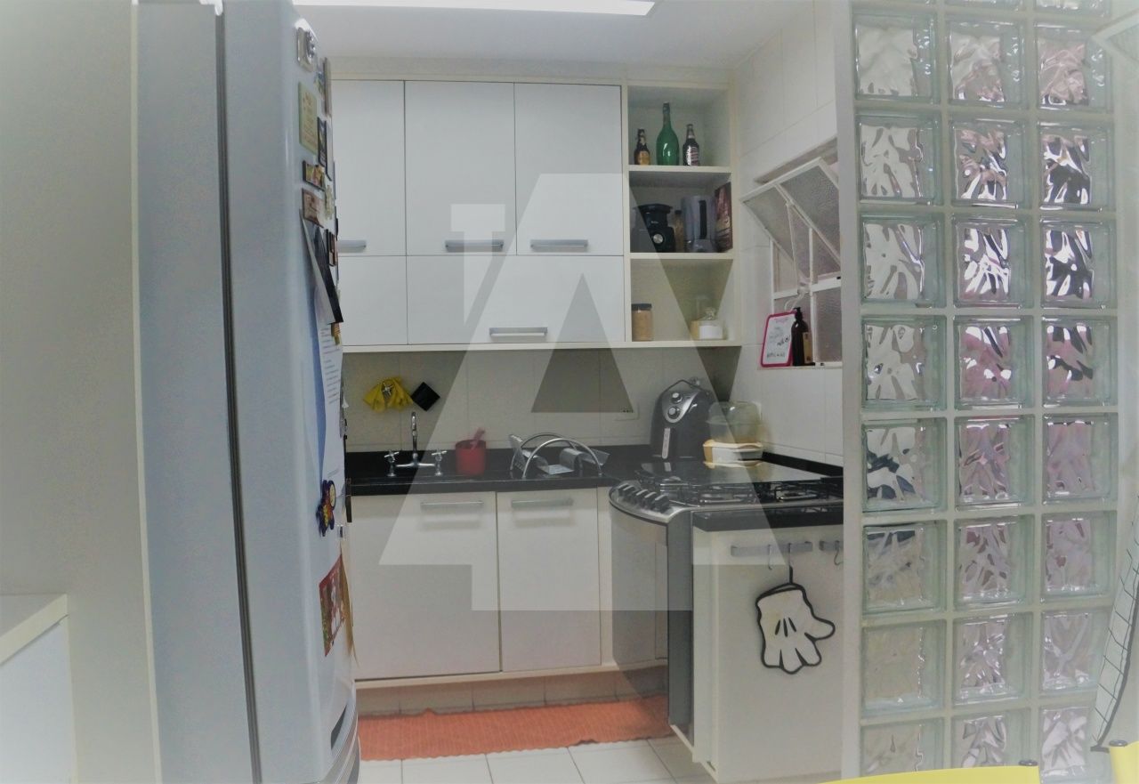 Cozinha com armários planejados SCA e dependências de empregada com quarto e banheiro.