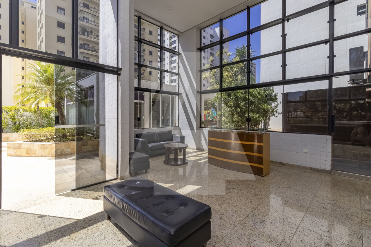 os janelões do teto à chão fizeram o living ficar muito ensolarado e espaçoso, todo o apartamento com luzes planejadas, janelas anti ruído, armários embutidos nas suítes,