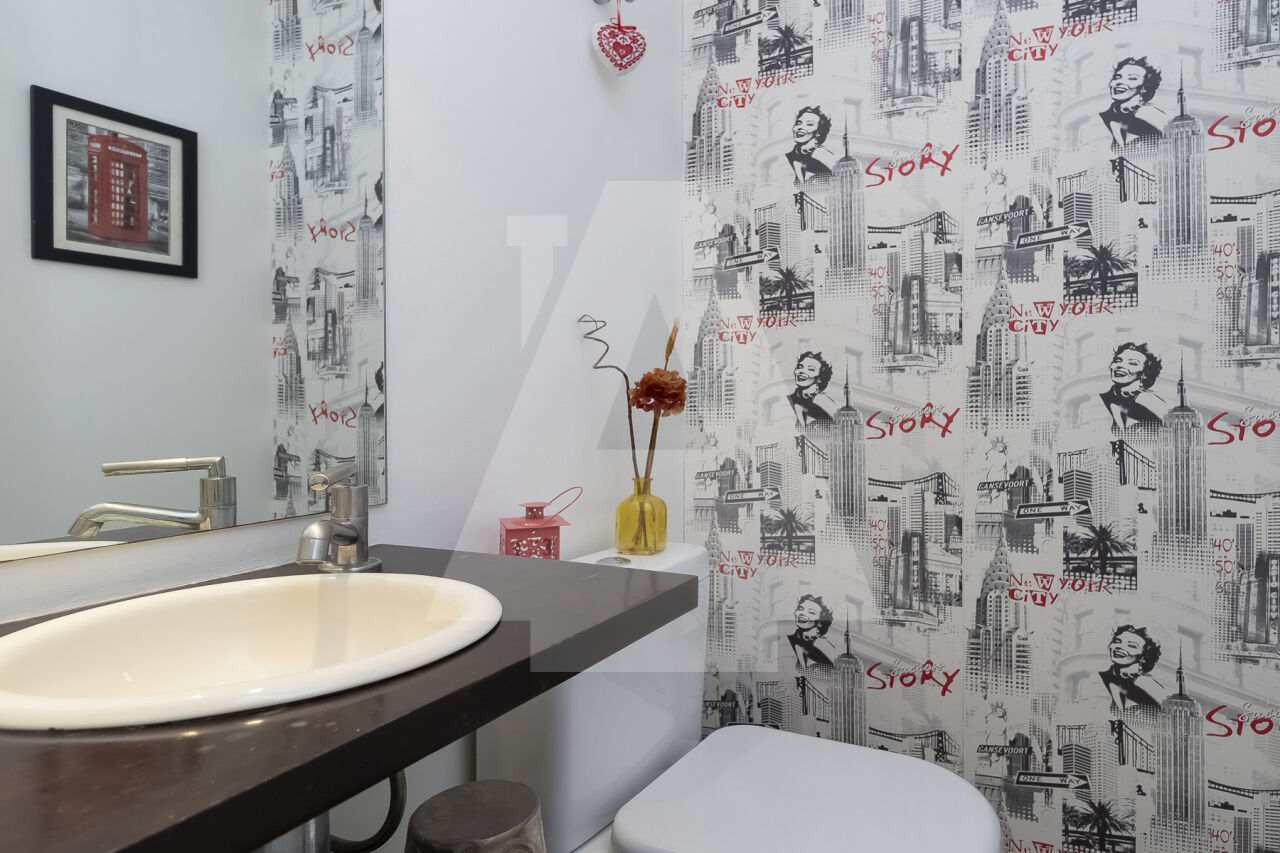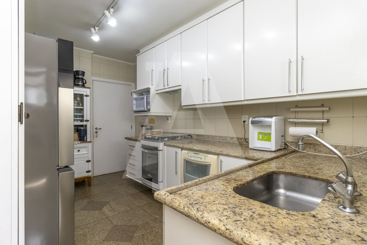 a suíte master com amplo closet, lavabo, cozinha independente y área de serviço completa.