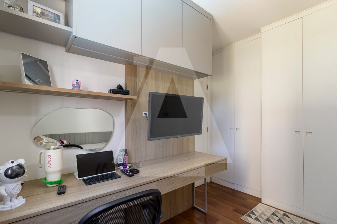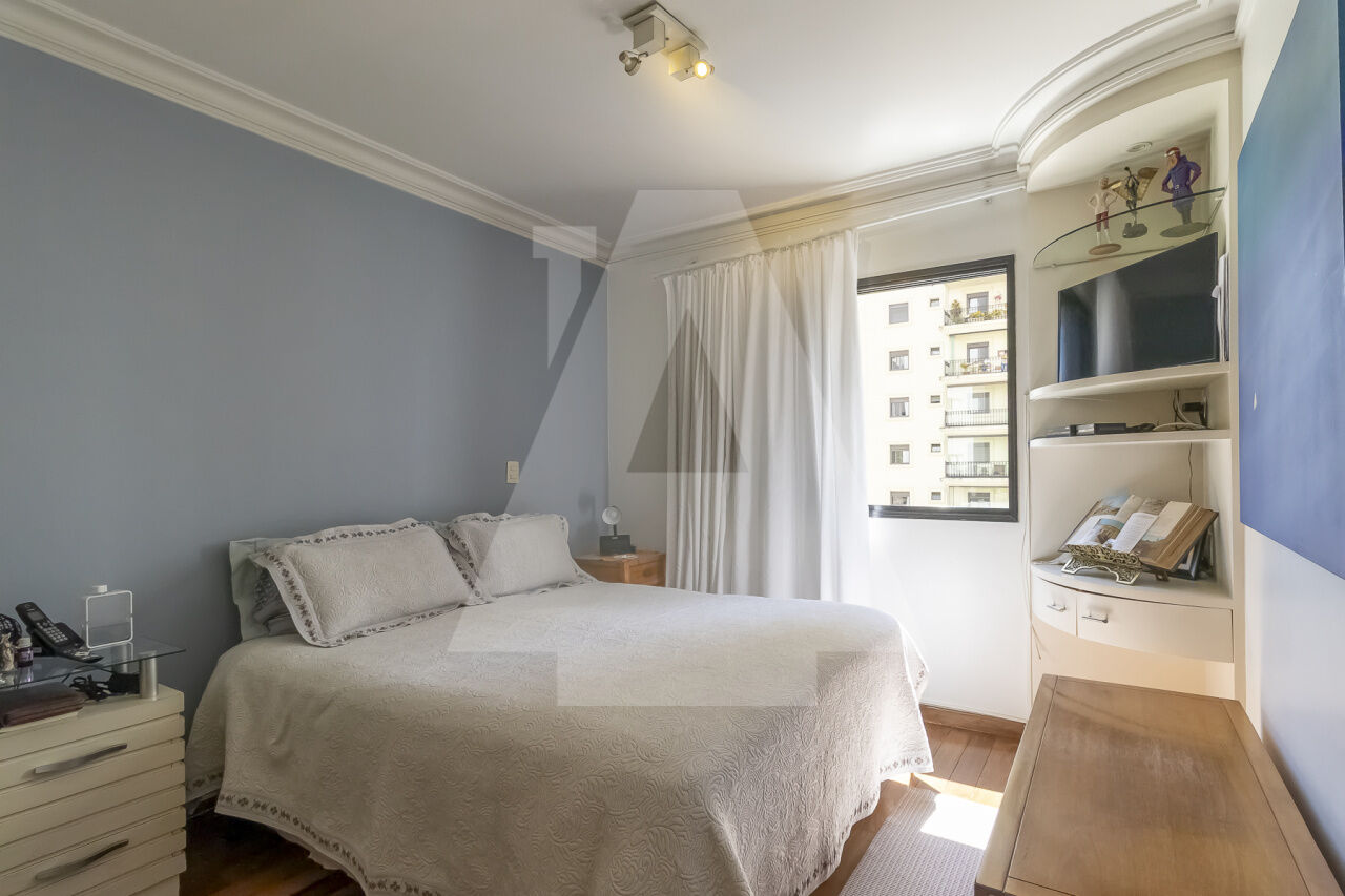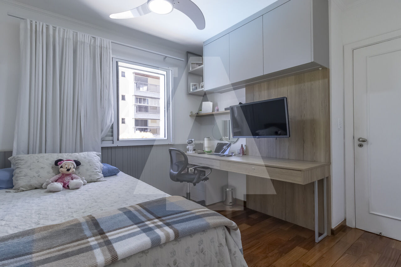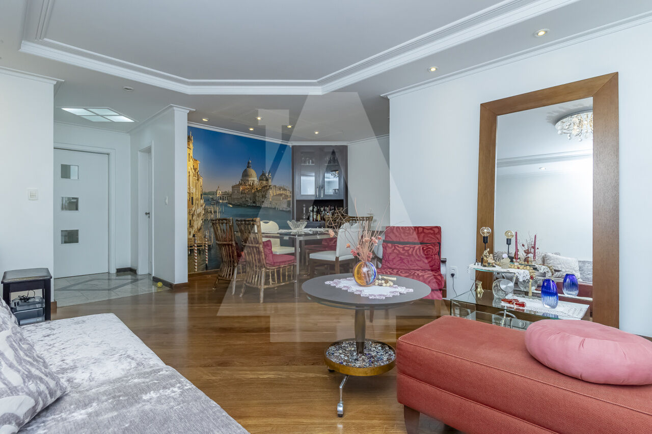 Possui 3 suítes, 2 vagas escrituradas, depósito privativo, piso de madeira em todo o apartamento,