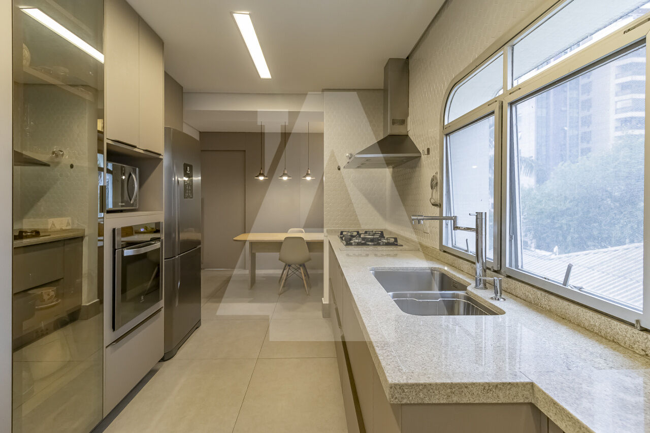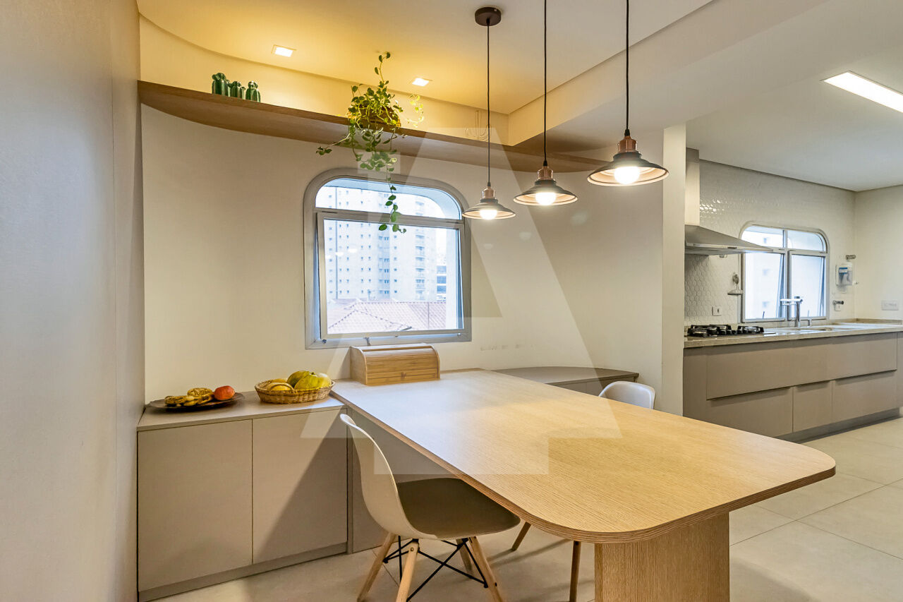 Moderno e lindo totalmente reformado faz 4 anos, com ar condicionado em todos os ambientes, lavabo, portas lindas, elevador social com hall privativo, ampla cozinha toda planejada com copa.