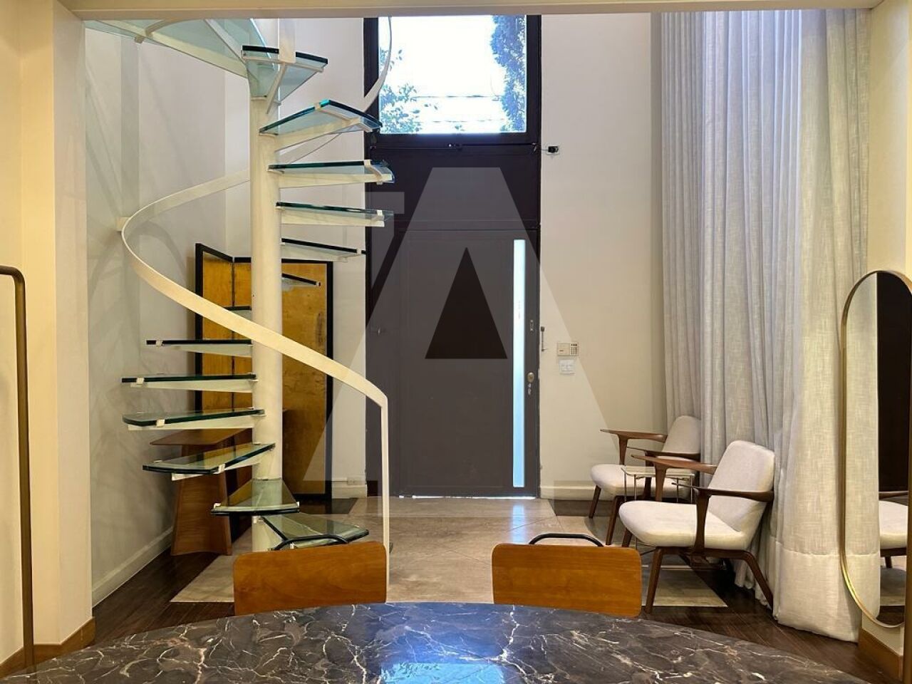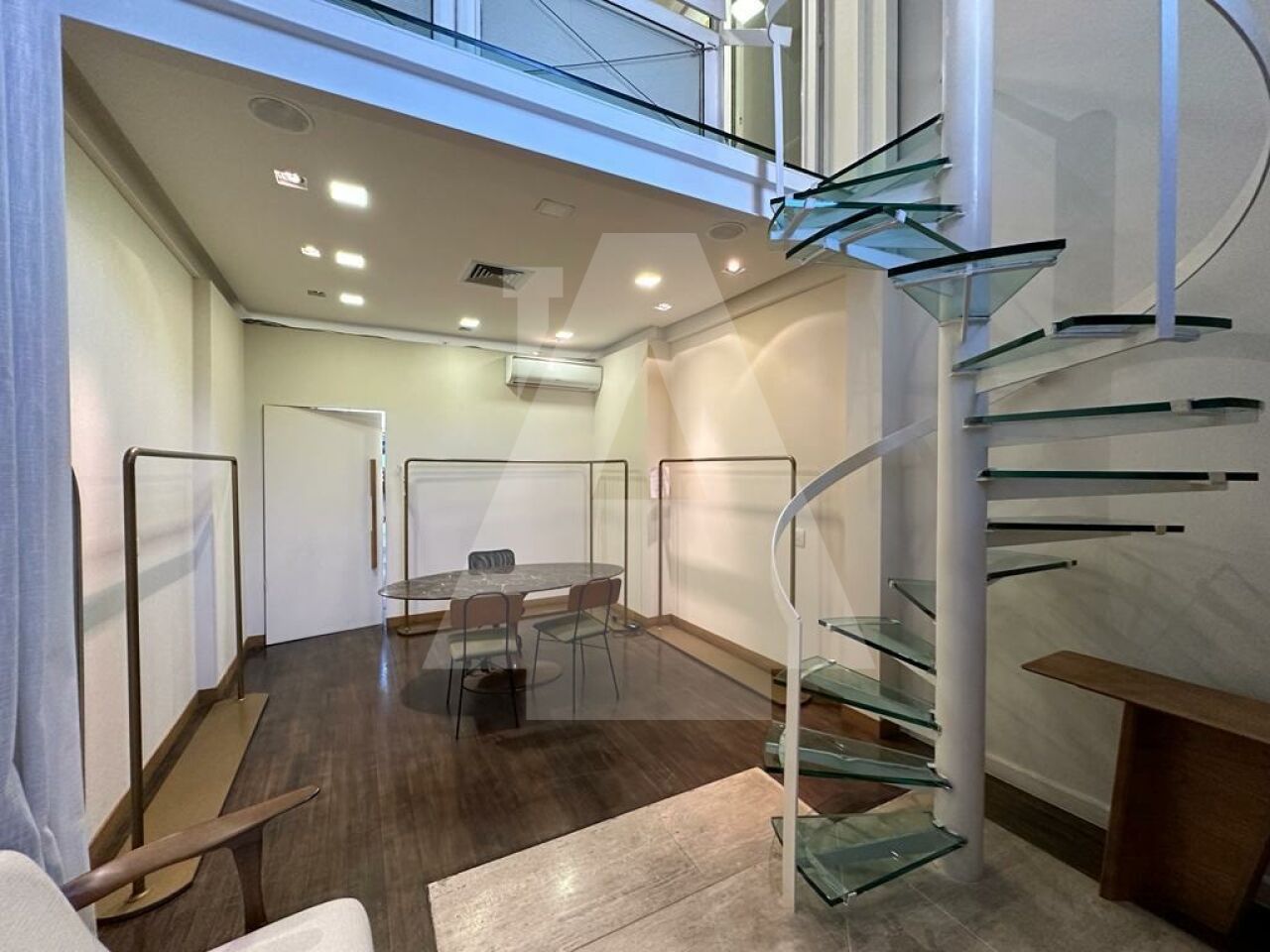 a escada de vidro que sobre para o mezanino e todo um charme!!!!