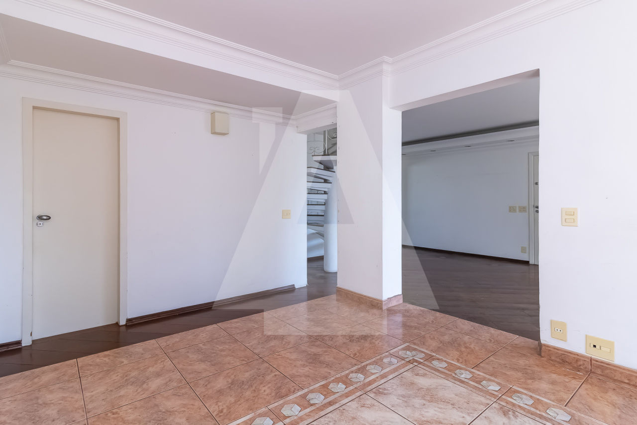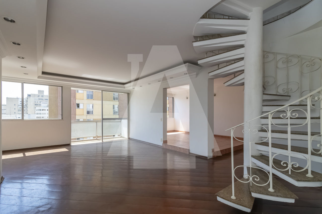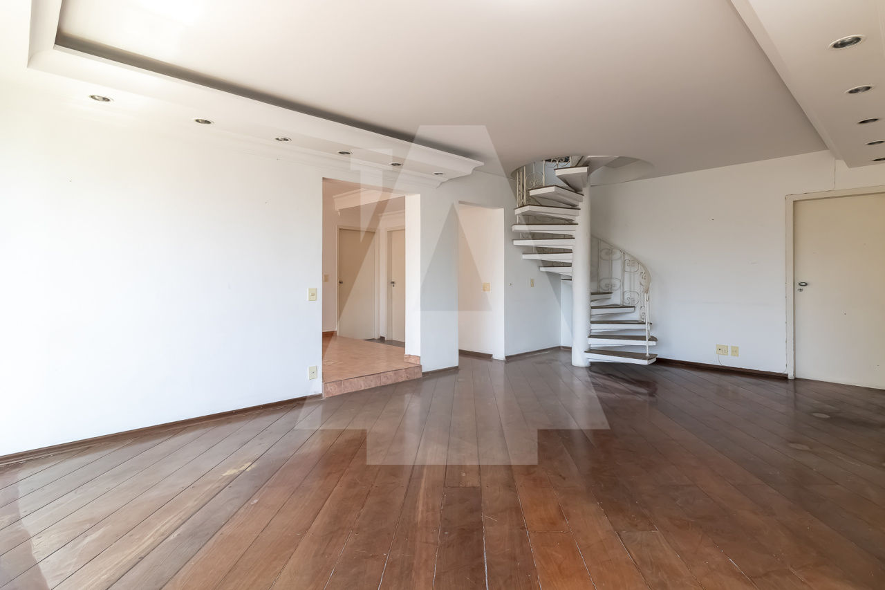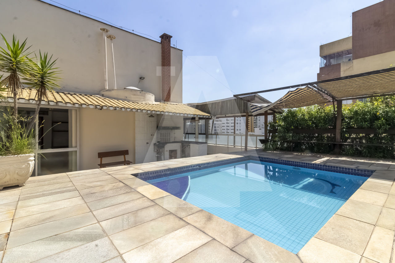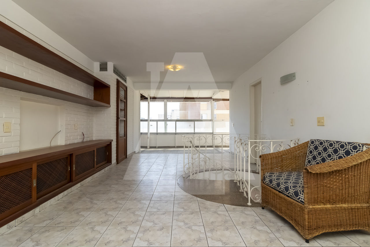 Cobertura duplex com muito potencial para voce deixar do seu jeito! Na planta original são 4 dormitórios , porém um deles foi aberto para a sala. São 270 m com uma planta ótima, super ensolarada, uma vista incrível, com piscina e churrasqueira. Além disso são 2 vagas de garagem e lazer completo no condomínio com quadra, piscina , academia e salão de festas. A localização é excelente perto de tudo que o bairro oferece , inclusive do Shopping.