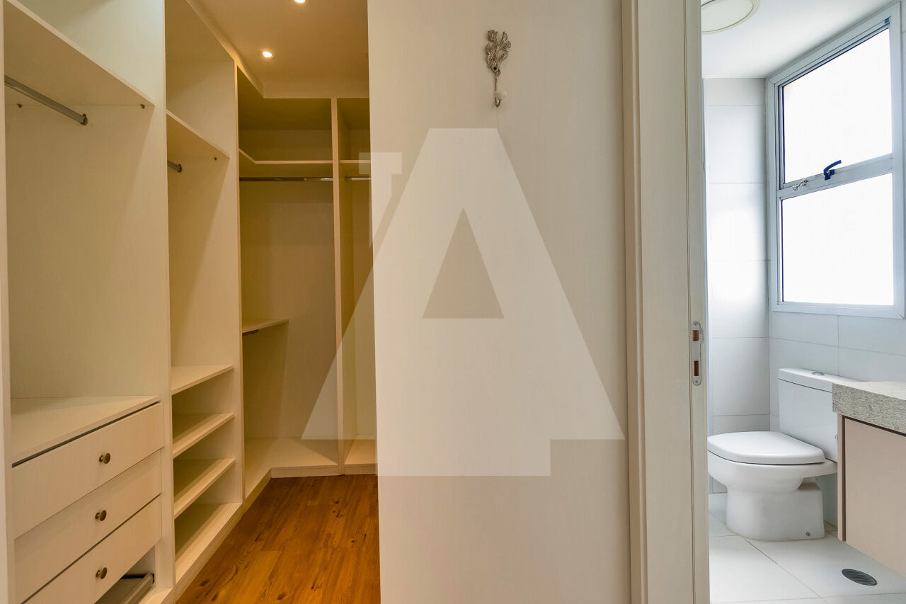 A suíte master possui 2 banheiros: um com hidromassagem e o outro com amplo box, ambos com cuba dupla. O closet é totalmente planejado? uma verdadeira perfeição!