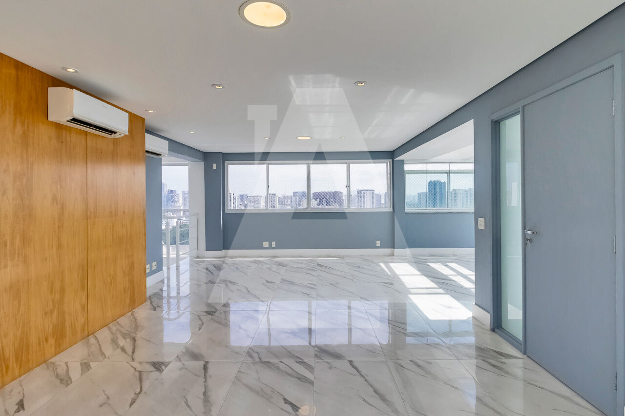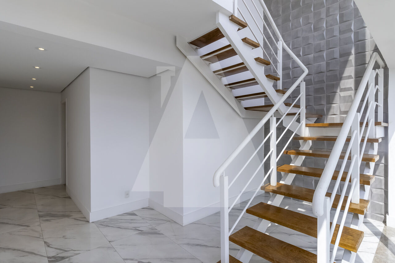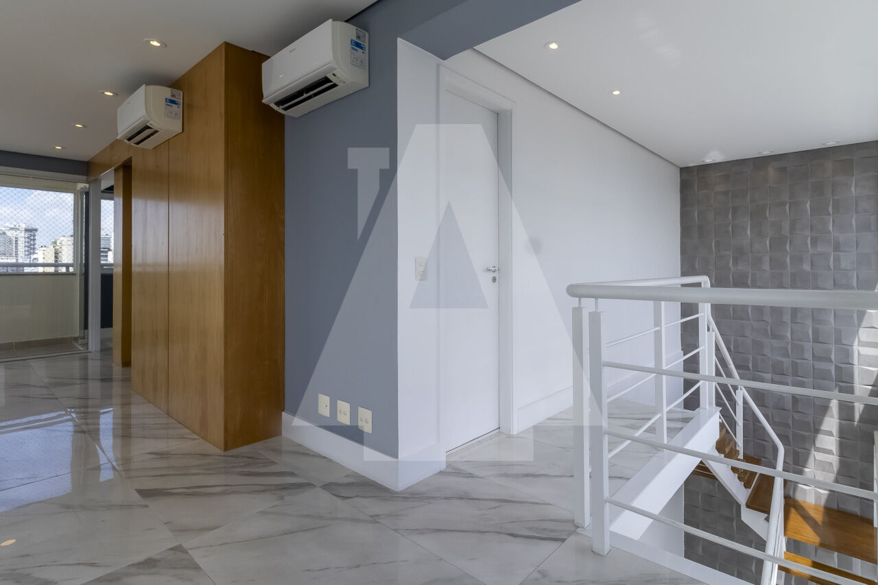 Cobertura duplex pronta para morar, com lindíssimo piso frio nas áreas sociais e piso de madeira nos dormitórios. Iluminação indireta em todo o apartamento e ar-condicionado em todos os ambientes.