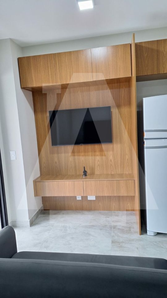 studio em predio novo, com varanda, mobilia nova, ar condicionado e lazer completo.